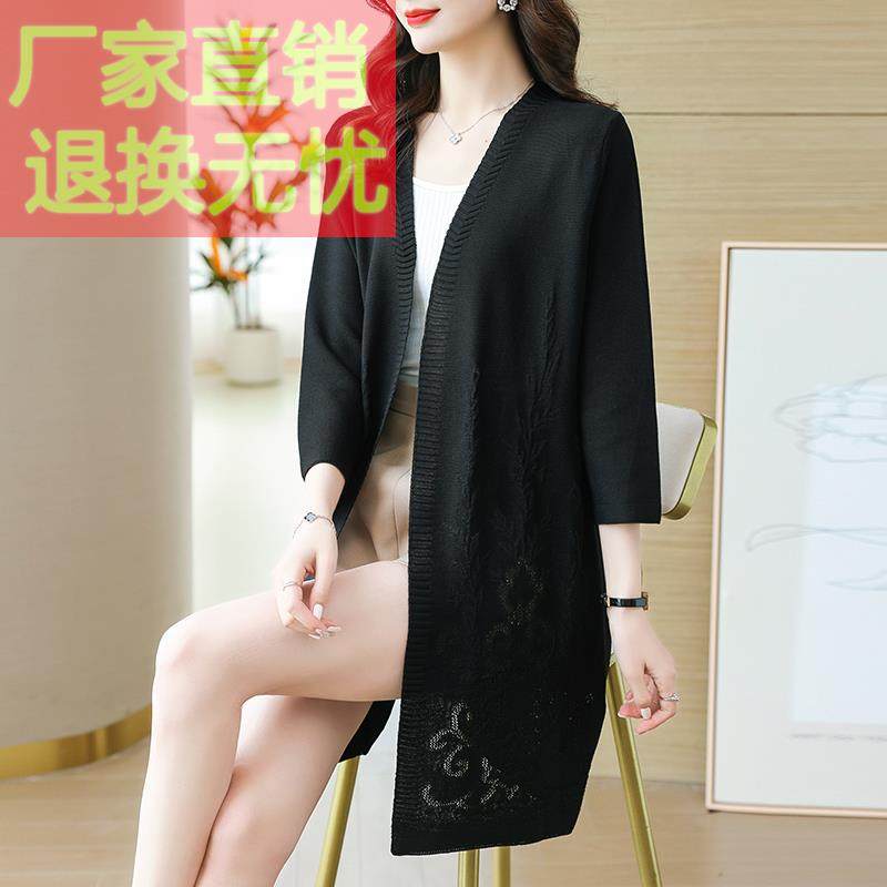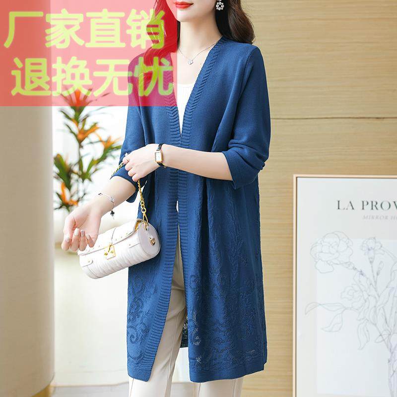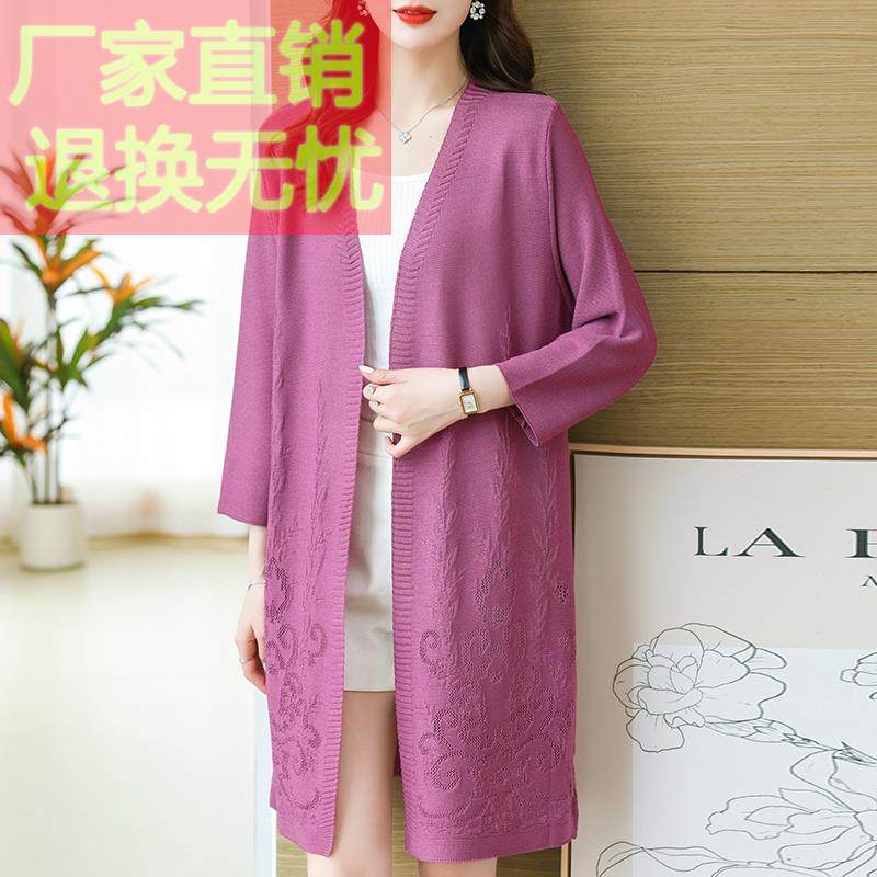 桑蚕丝镂空薄开衫针织外套女中长款披肩防晒空调衫宽松大码妈妈装