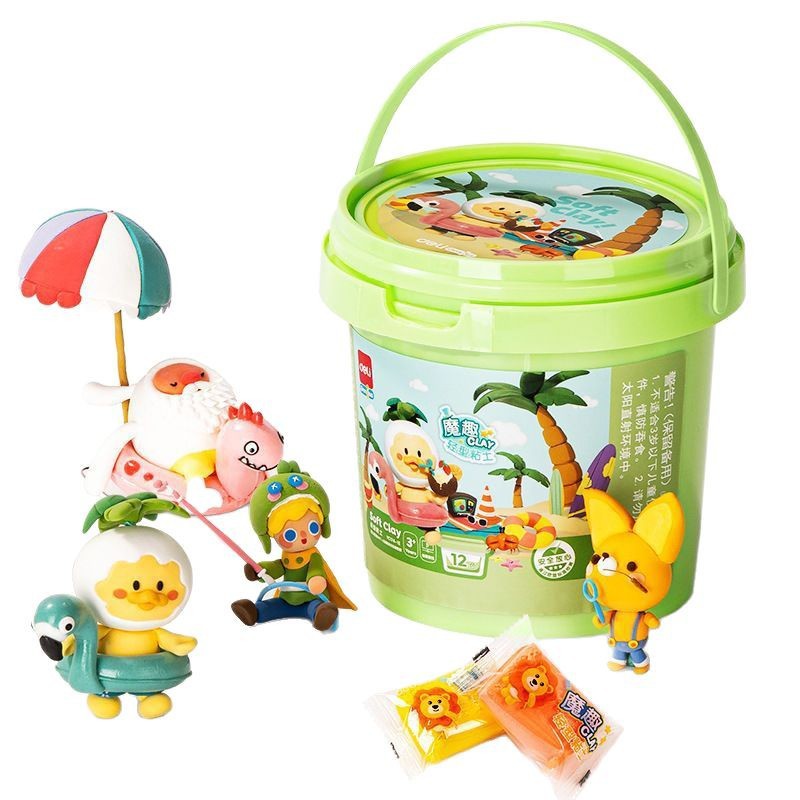 得力YC174粘土橡皮泥幼儿园彩泥小学生diy手工桶装玩具套装模具