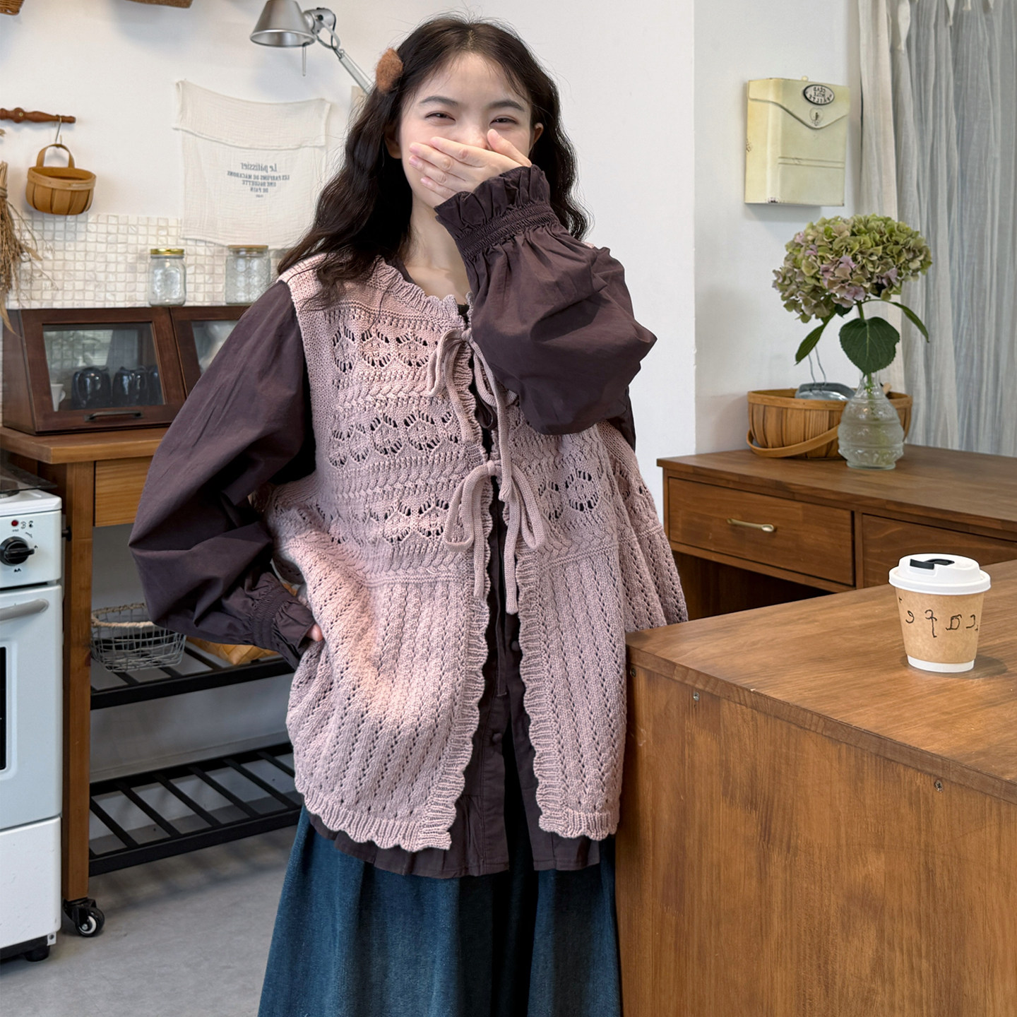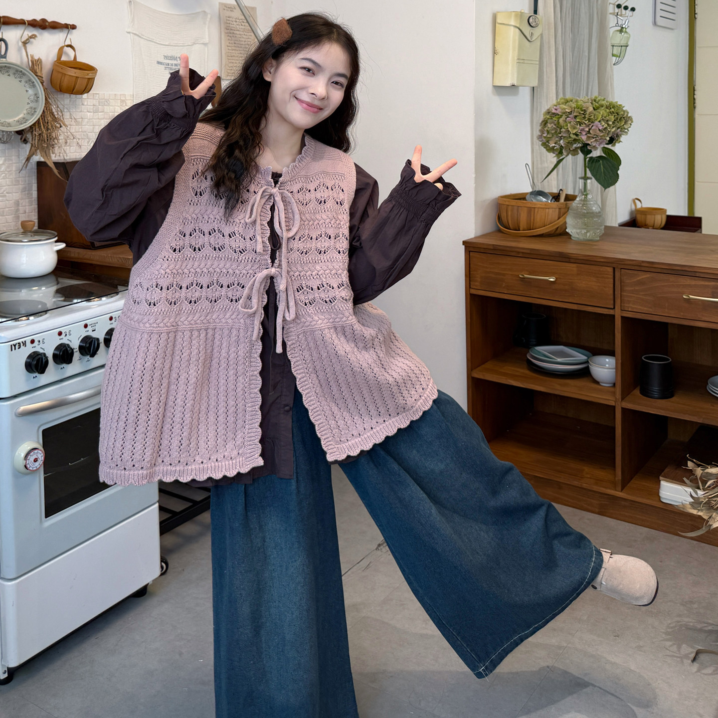大码女装2025秋季新款胖mm韩版圆领百搭衬衫+针织马甲+牛仔裤套装