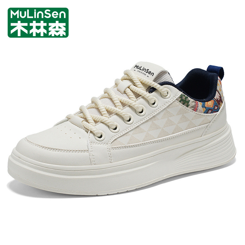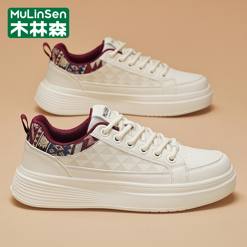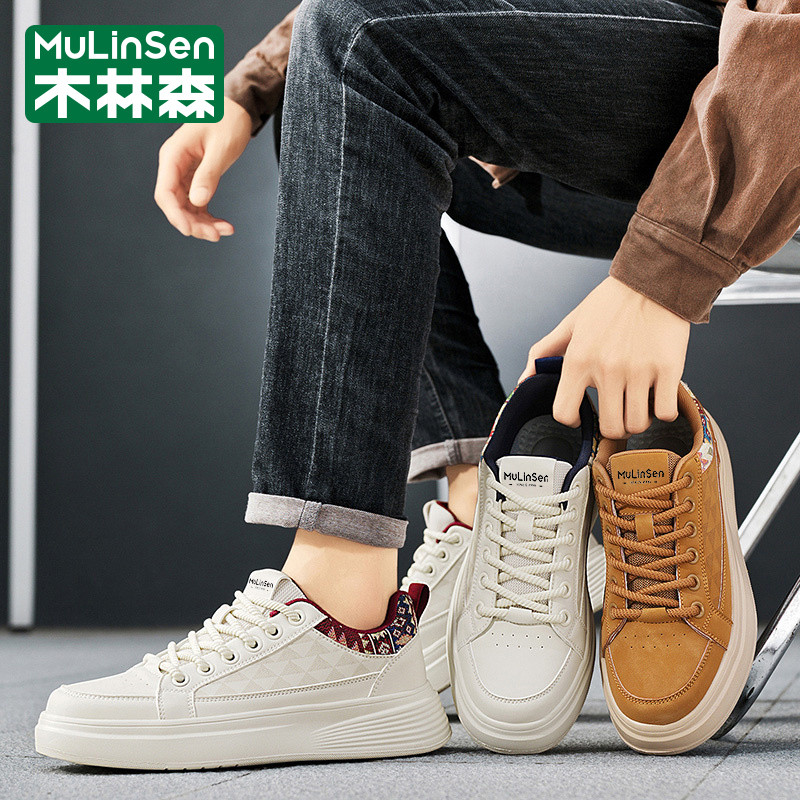 木林森男鞋2025新款冬季潮流运动休闲百搭设计感小白皮面工作板鞋