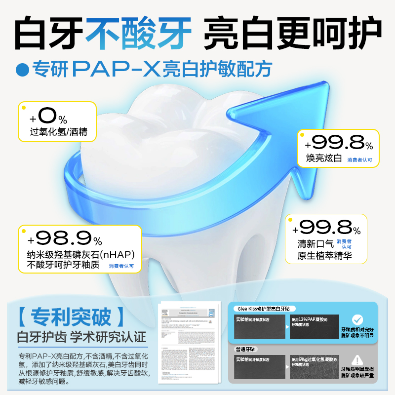 gleekiss美白牙贴去黄洁白牙齿美白美牙贴片白牙贴片凝胶