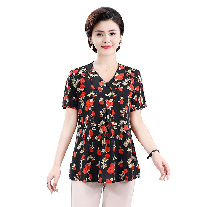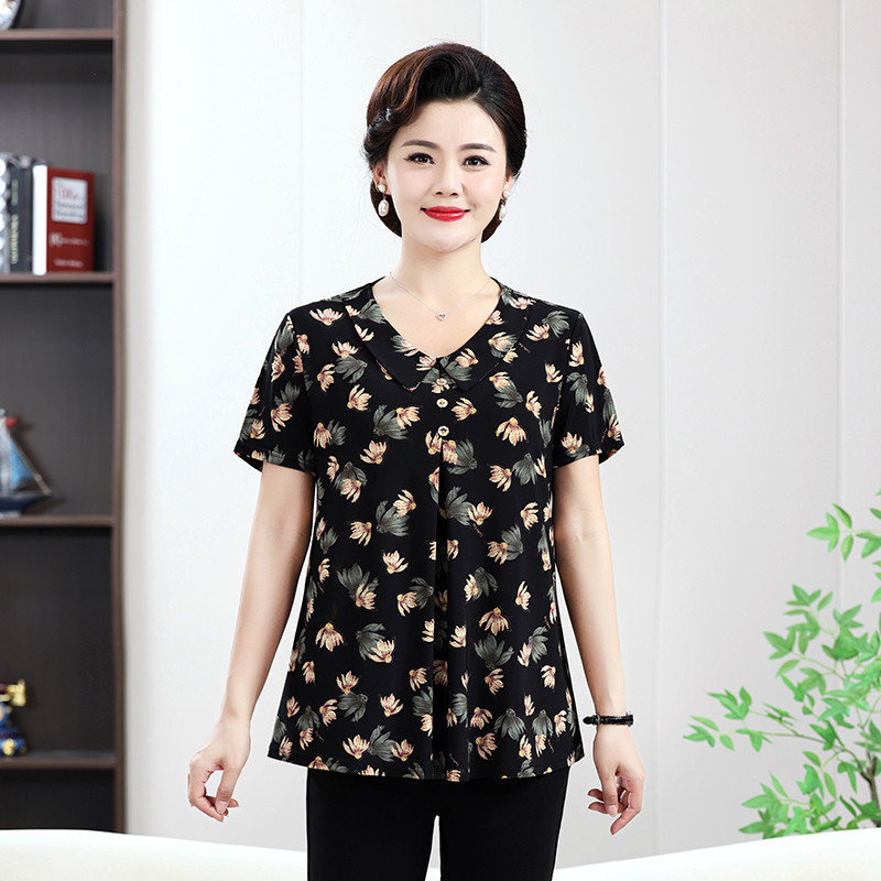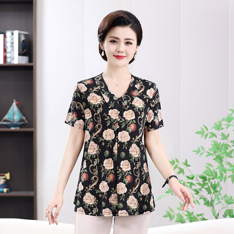 夏装短袖t恤女士中年妈妈装2025新款加肥加大码中老年人特体上衣