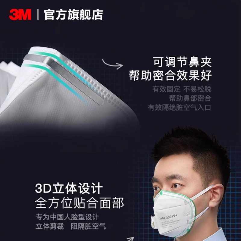 3M口罩kn95防工业粉尘防霾3d立体防护口罩带阀防风防尘面罩9502V+