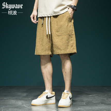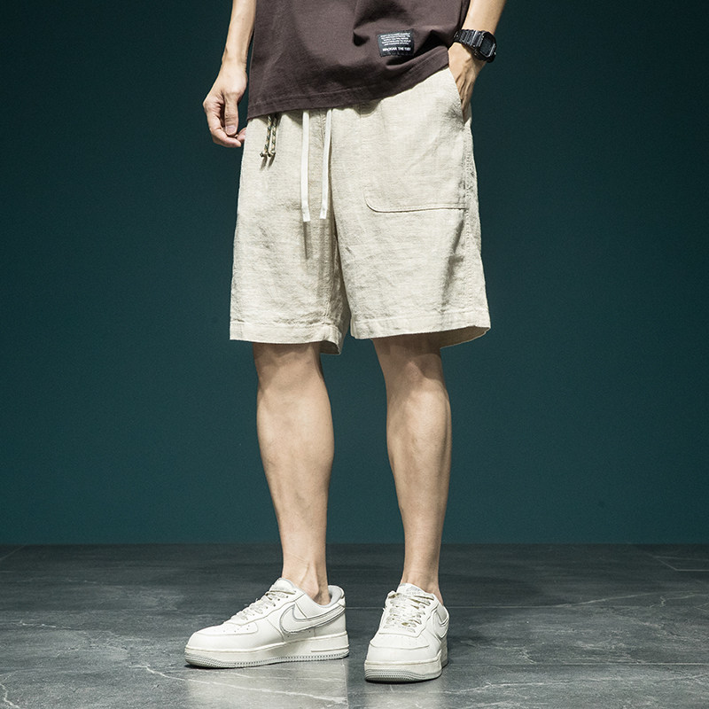 日系薄款工装短裤男夏季透气棉麻裤宽松直筒五分亚麻休闲百搭中裤