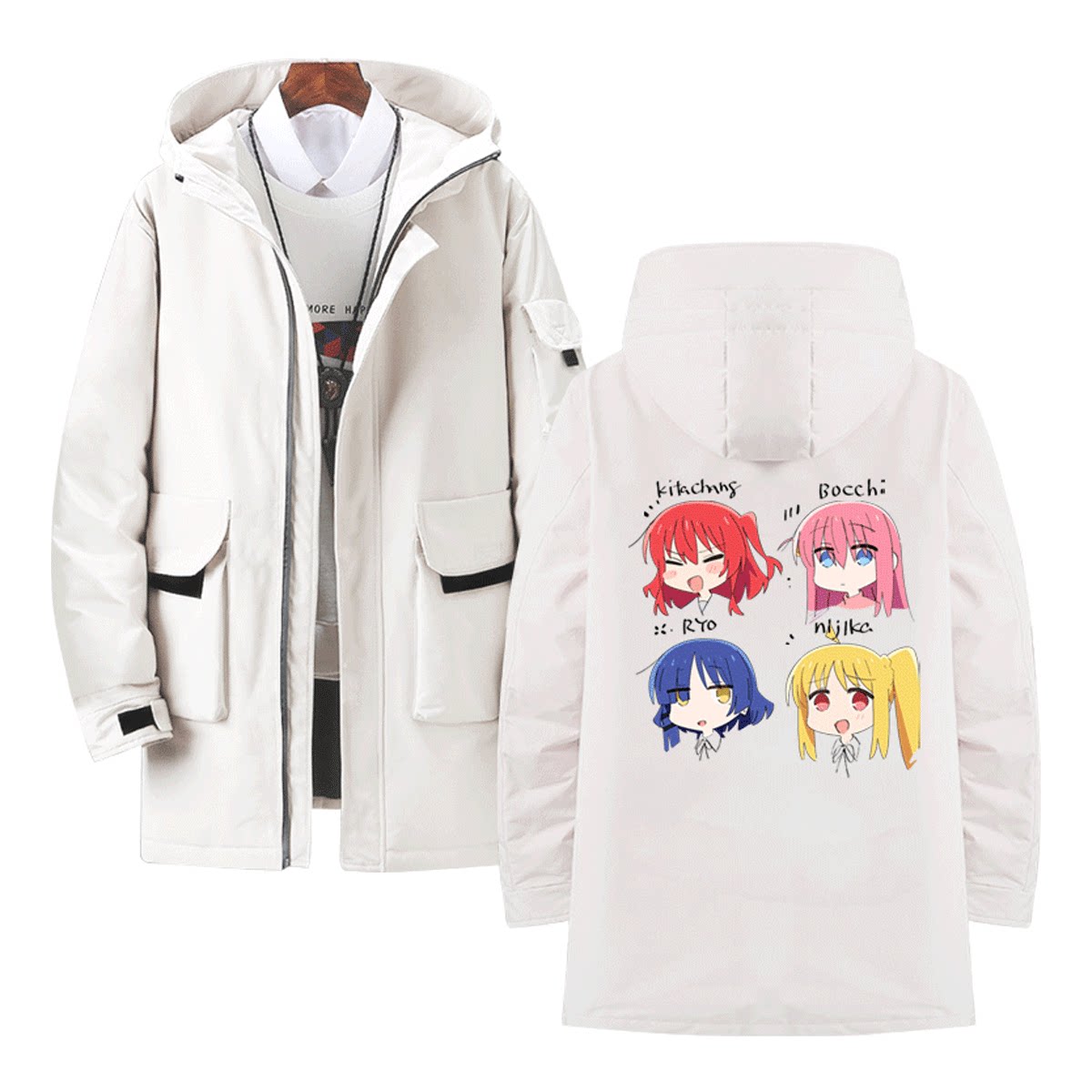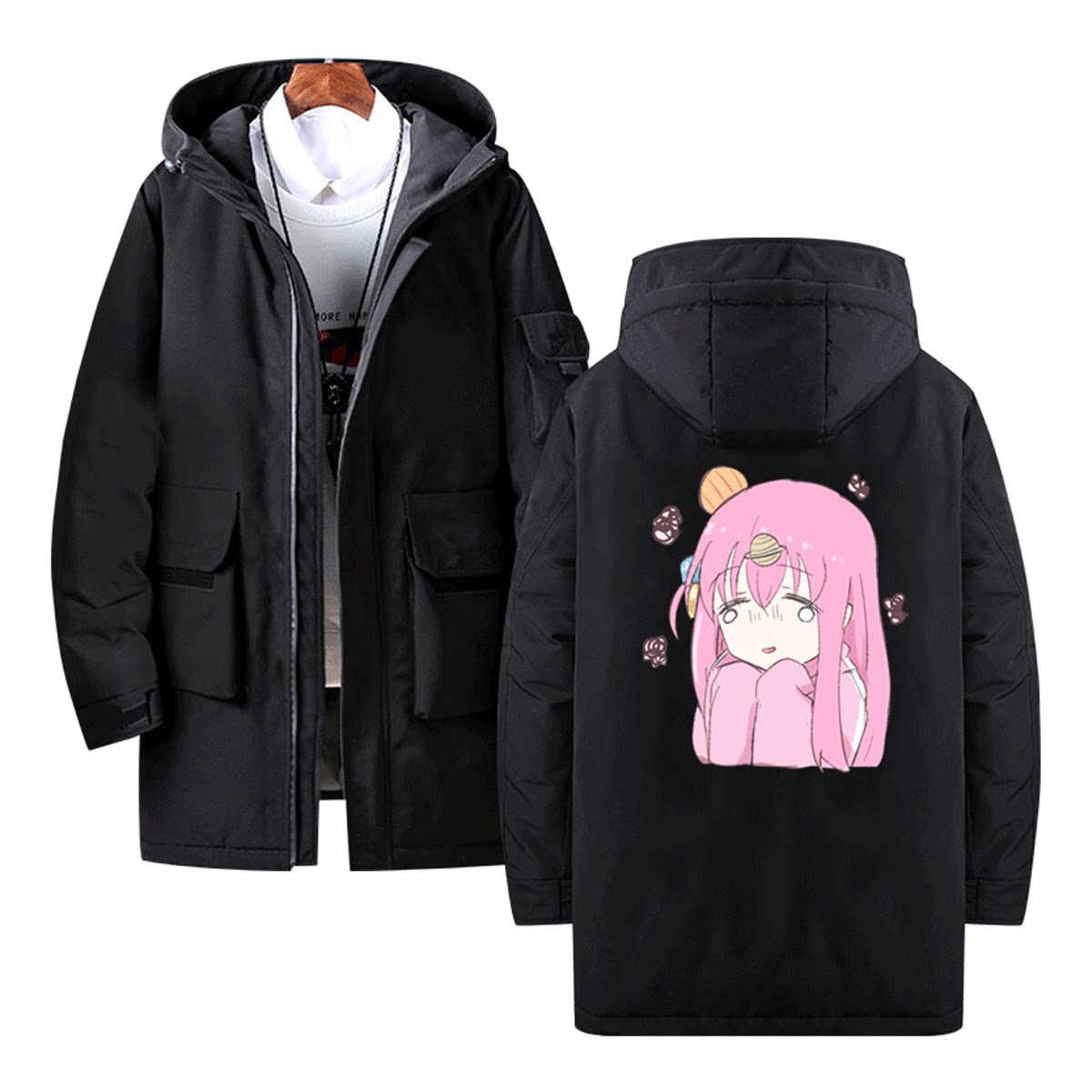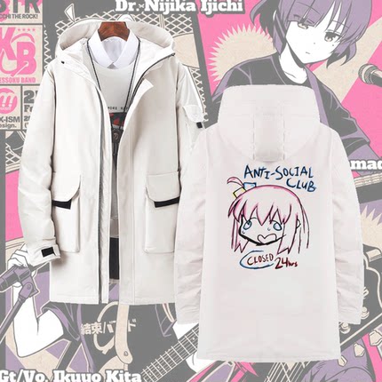 孤独摇滚男动漫波奇酱同款二次元秋冬情侣保暖中长连帽外套羽绒服
