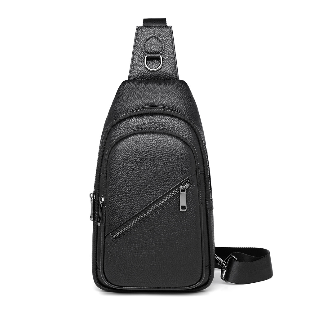 仅亏一天男士真皮胸包单肩斜挎包时尚多功能牛皮商务休闲胸前背包