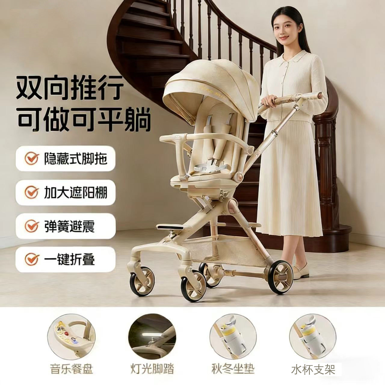 dy儿童遛娃神器婴儿手推车轻便双向一键折叠高景观男女宝可坐躺