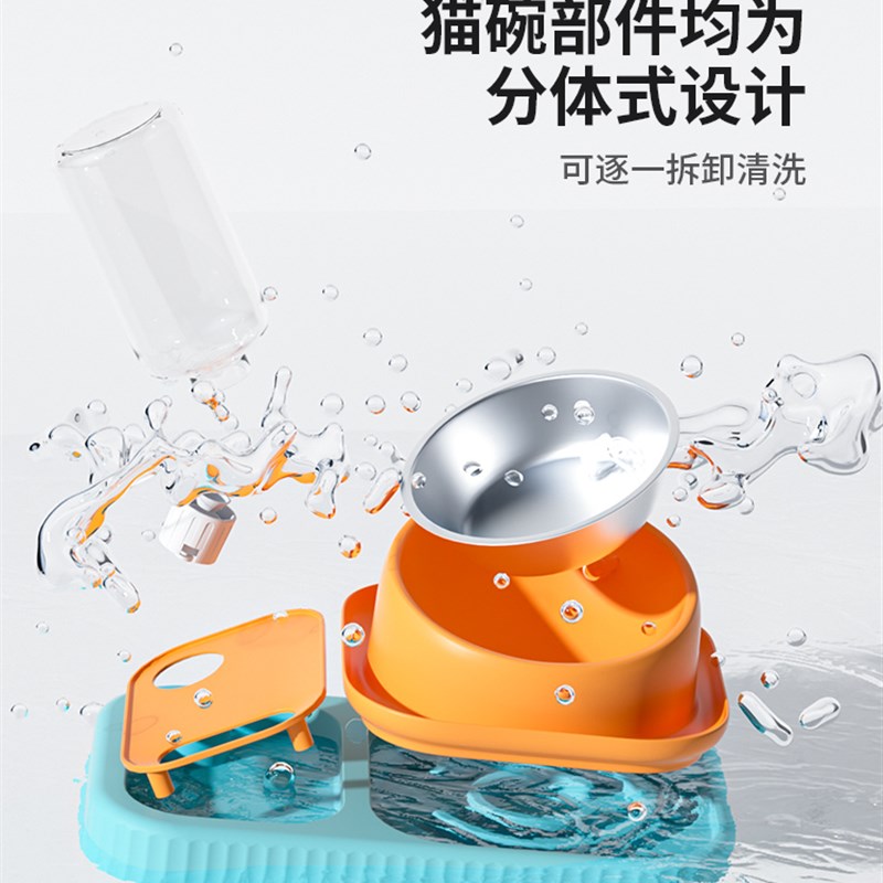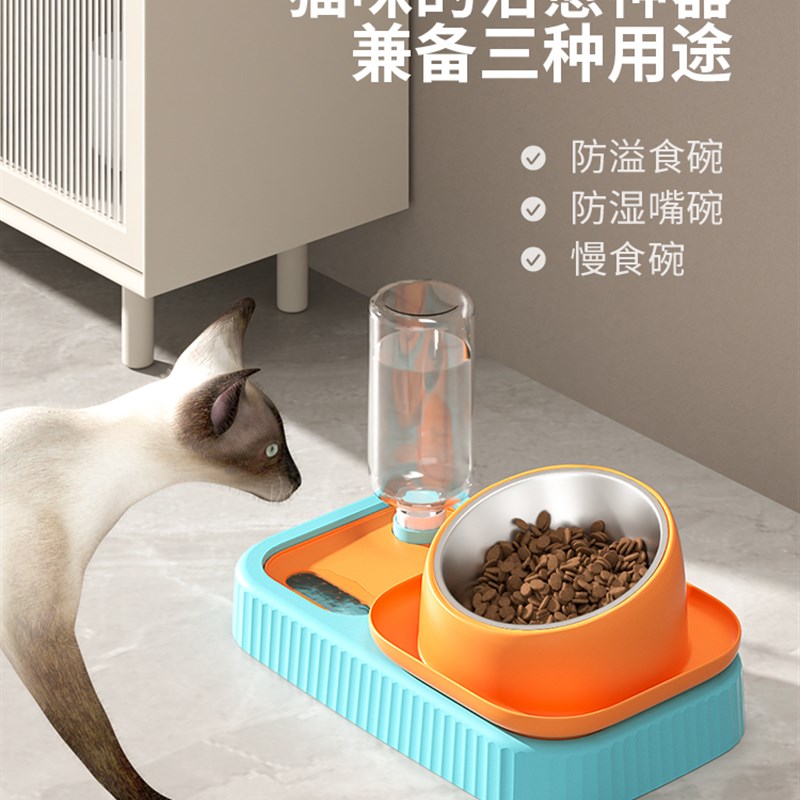 猫碗双碗保护颈椎自动饮水不锈钢狗盆防打翻慢食碗猫盆喝水一体