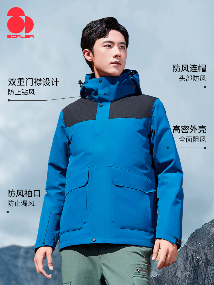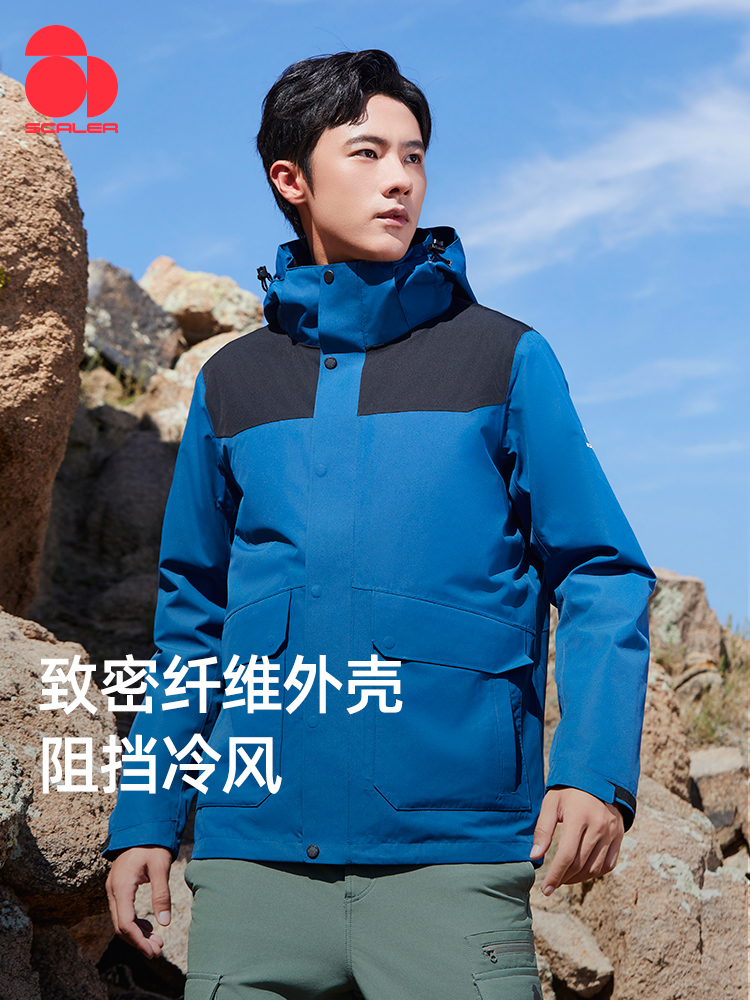 思凯乐户外男女秋冬保暖鹅绒内胆三合一两件套保暖冲锋衣F2402666