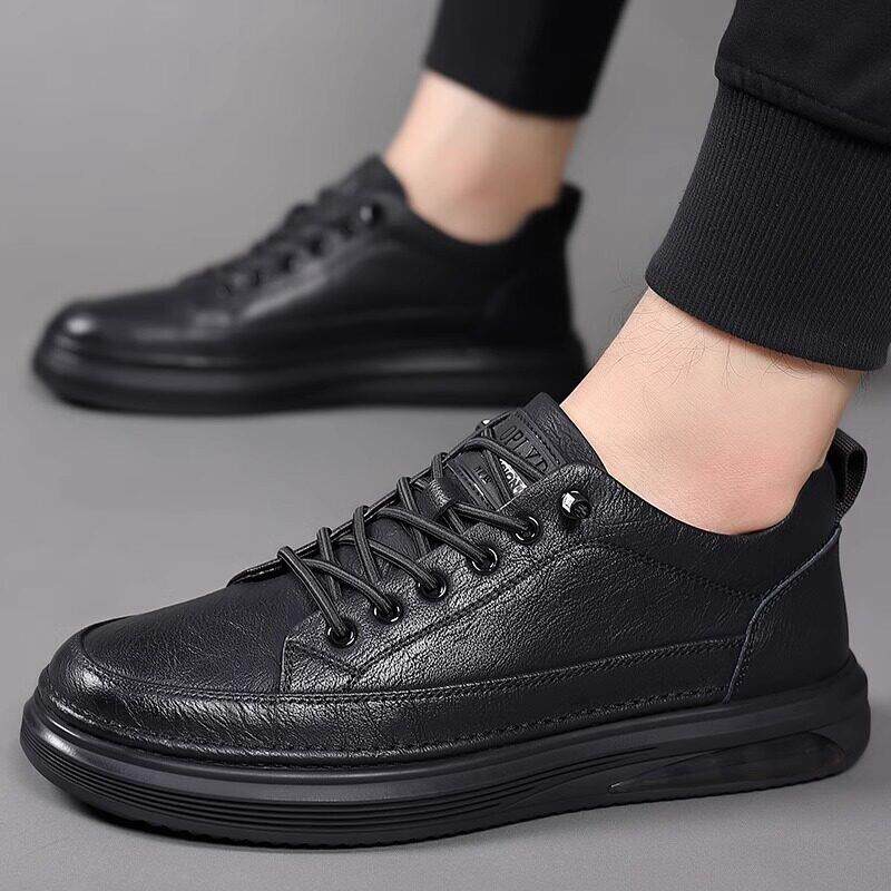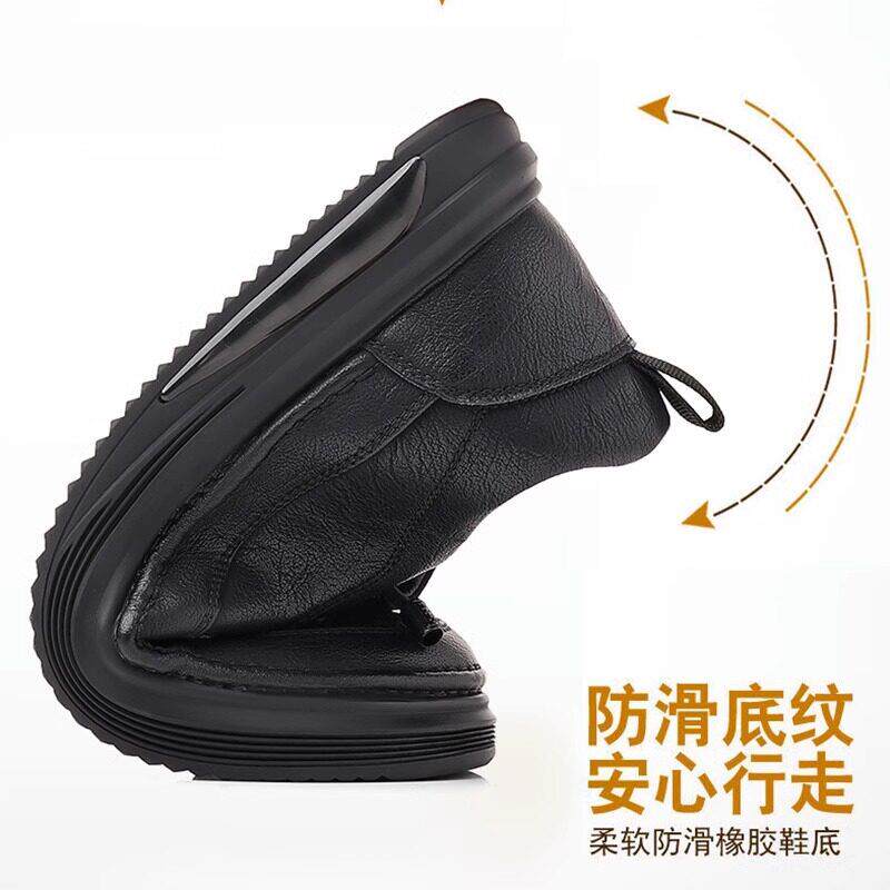 男鞋2025春季新款牛皮透气男士休闲 皮鞋黑色轻便软底增高低帮滑