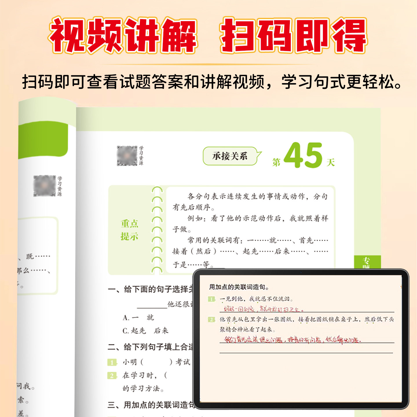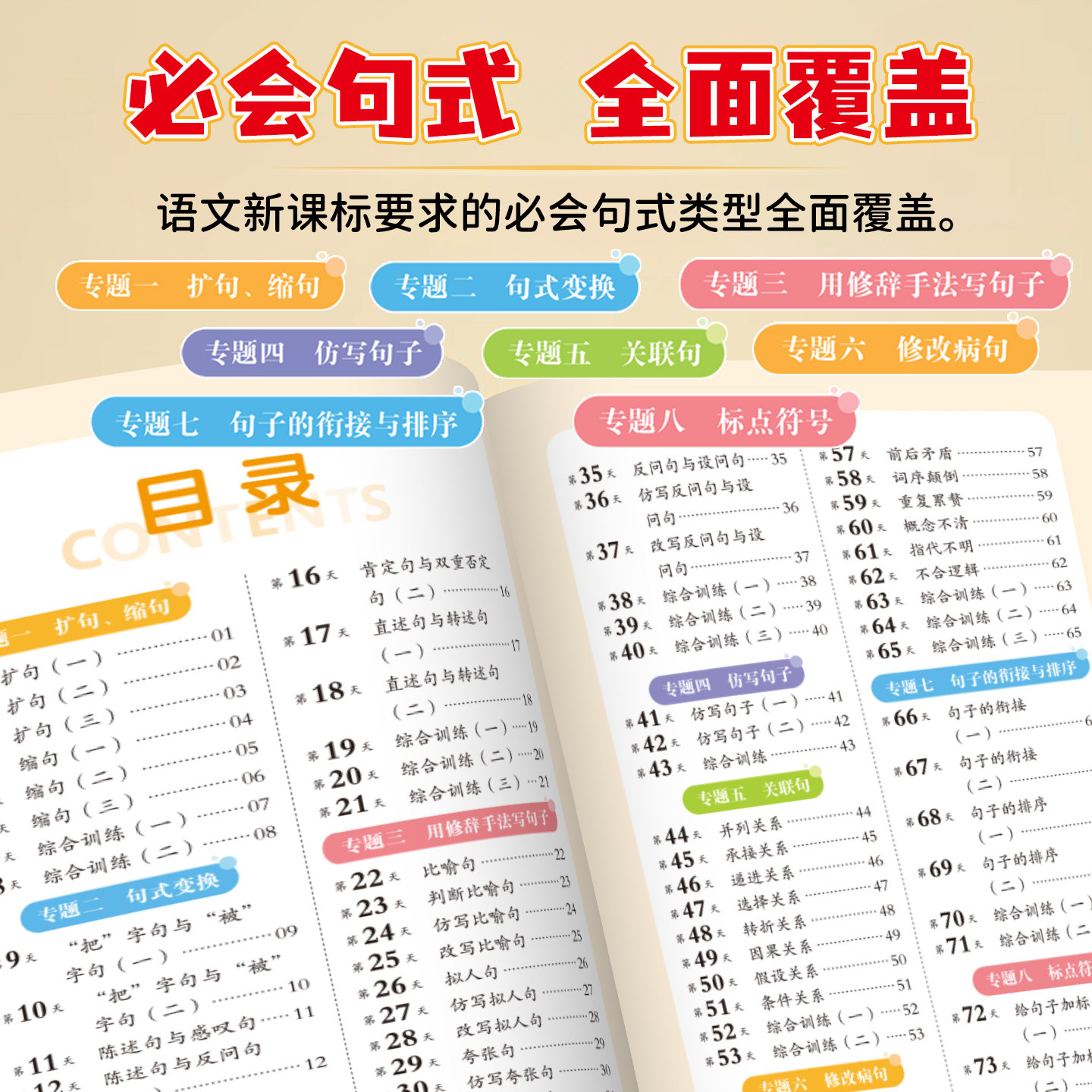 【视频讲解】2025版小学语文句式强化训练一二三四五六年级语文强化训练同步练习册句式大全扩句仿句组词造句修改照样子写句子练习