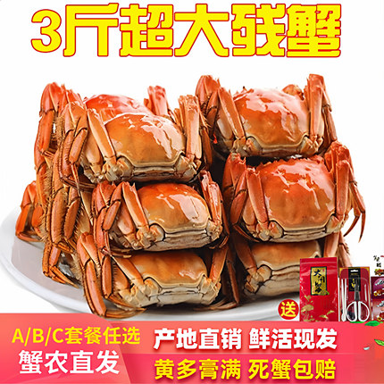 鲜活特大残蟹大闸蟹断脚蟹现货足称3斤10-13只螃蟹公母洪泽湖活蟹
