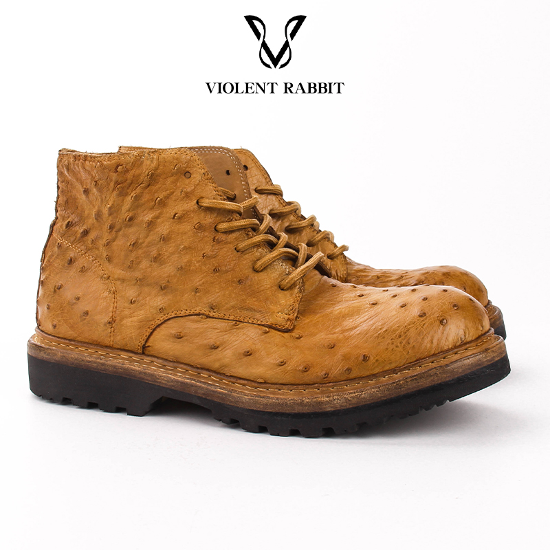 VR兔爷印第安鸵鸟皮水洗复古高帮靴子做旧圆头马丁靴工装靴男皮靴