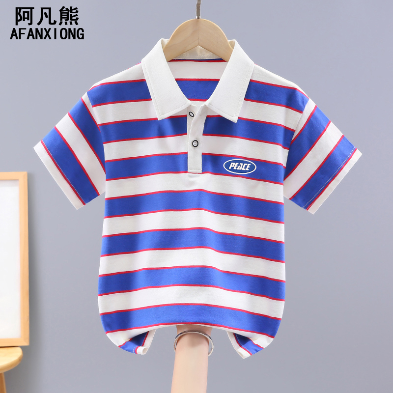 男童t恤夏装儿童短袖Polo衫2025新款打底衫上衣凉感中大童条纹潮