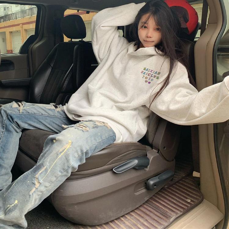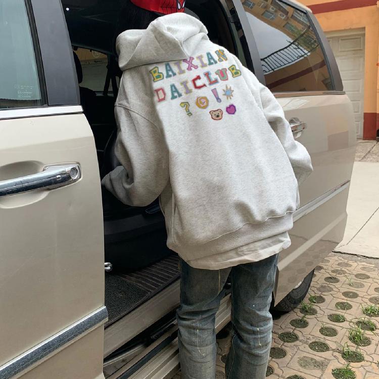 纯棉美式oversize灰色连帽卫衣女2024新款爆款慵懒chic设计感外套