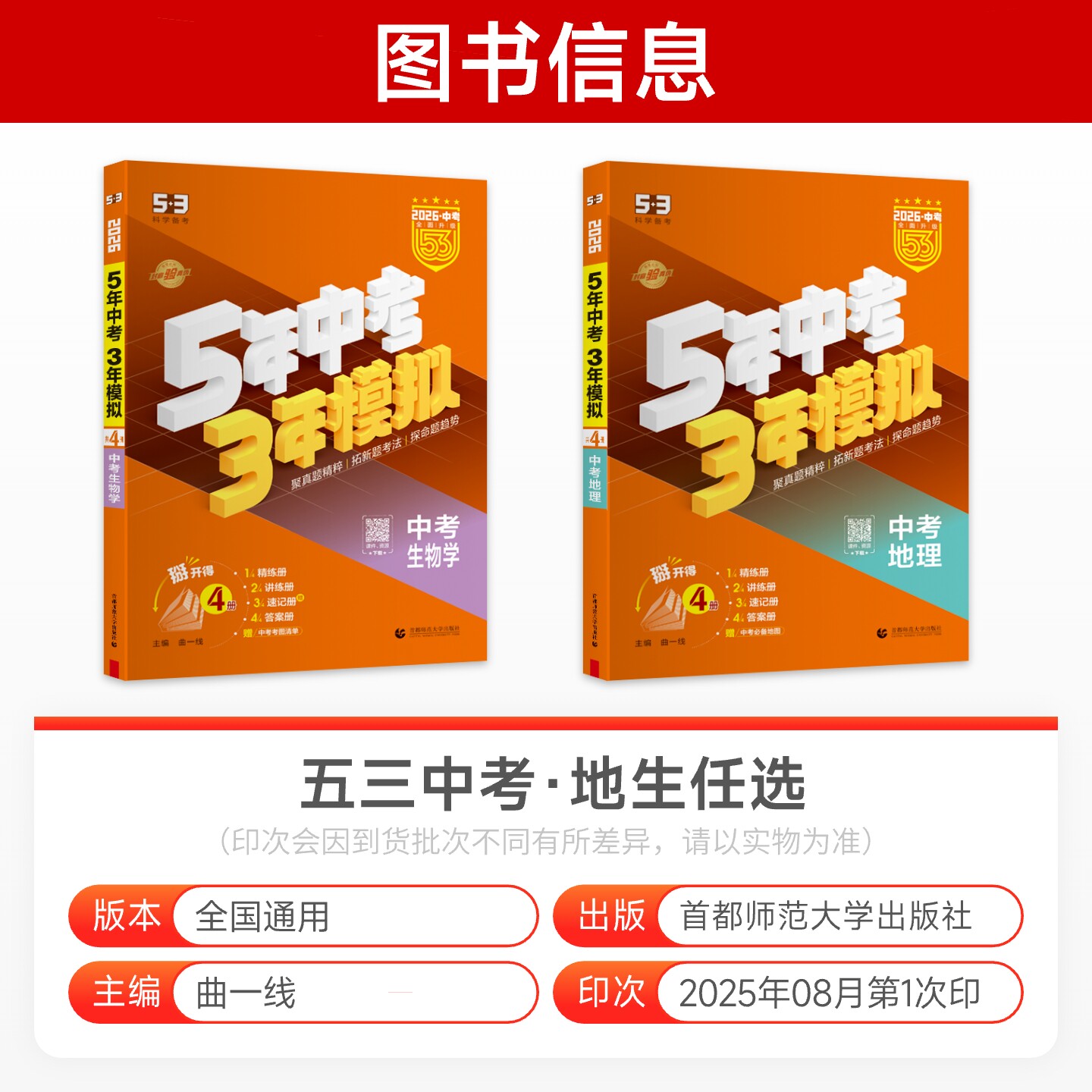 2026版五年中考三年模拟生物地理全国版初中5年中考3年模拟 53七八年级上下册中考版真题生地会考试卷五三生物地理中考总复习资料