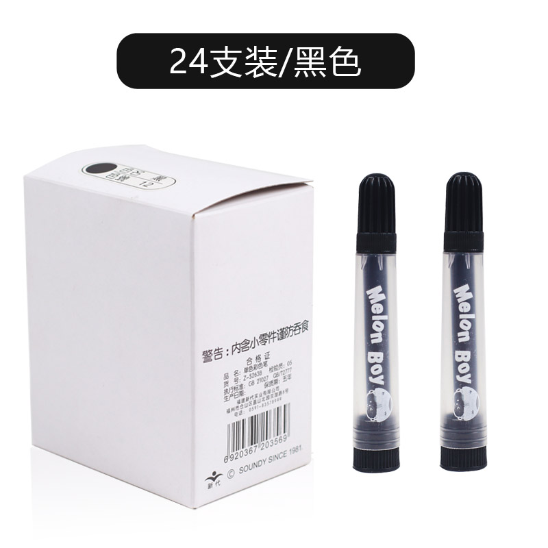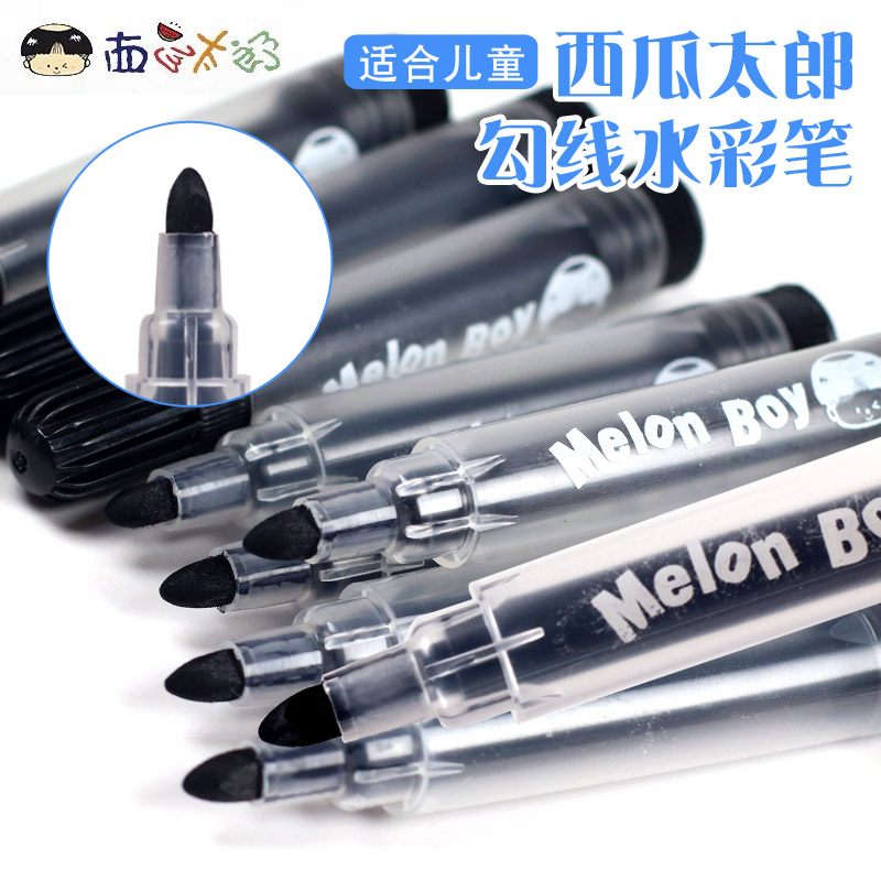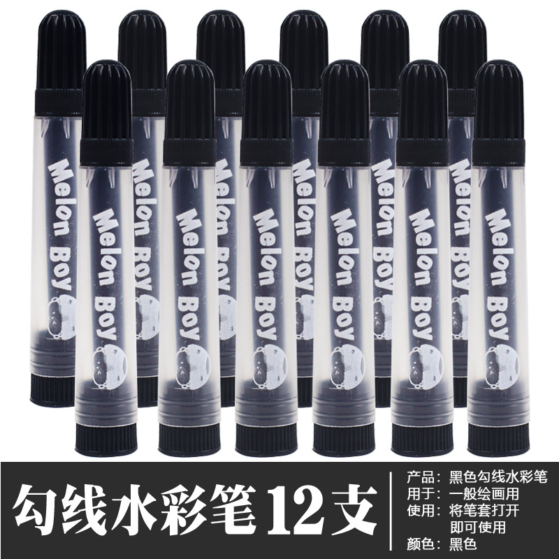 西瓜太郎黑色水彩笔勾线笔儿童绘画涂鸦水彩笔幼儿园美术黑色大头笔描边笔水彩手绘画笔24支勾线笔记号笔