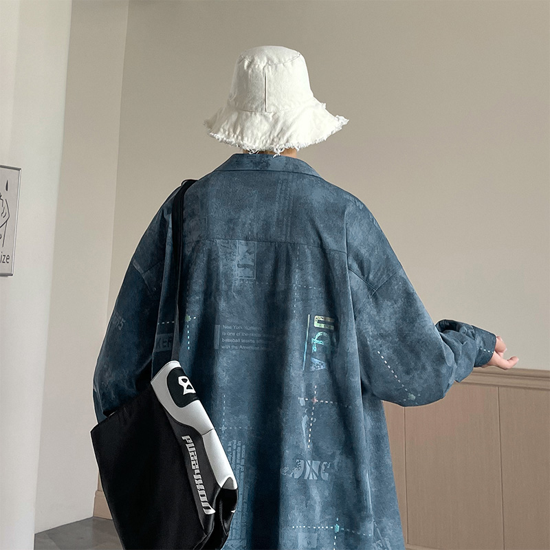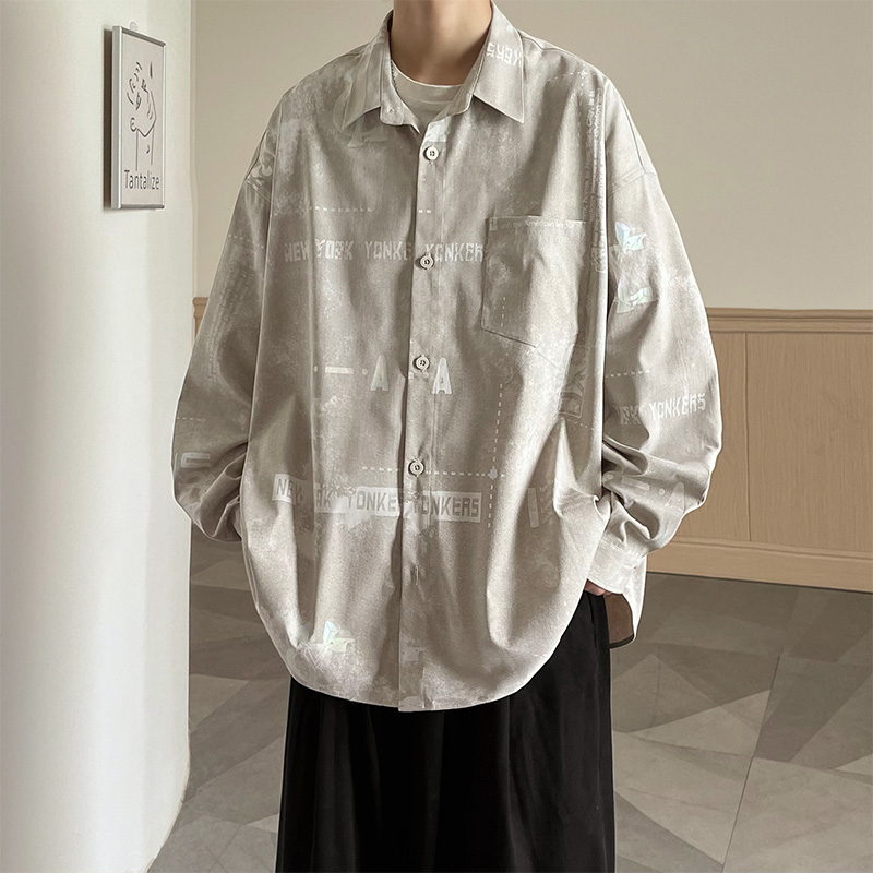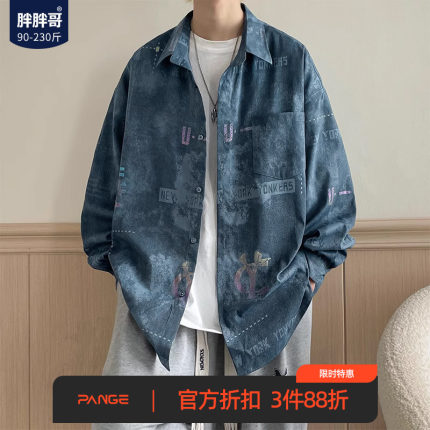 设计感高级长袖衬衫男士春季潮牌内搭宽松衬衣港风大码反光外套胖