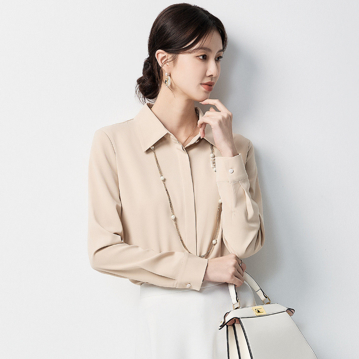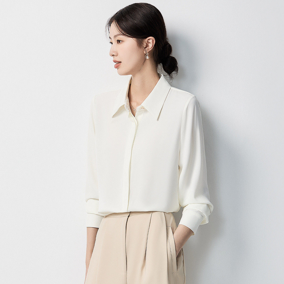 罗蒙春秋长袖衬衫女士基础款简约休闲通勤百搭纯色职业衬衣女