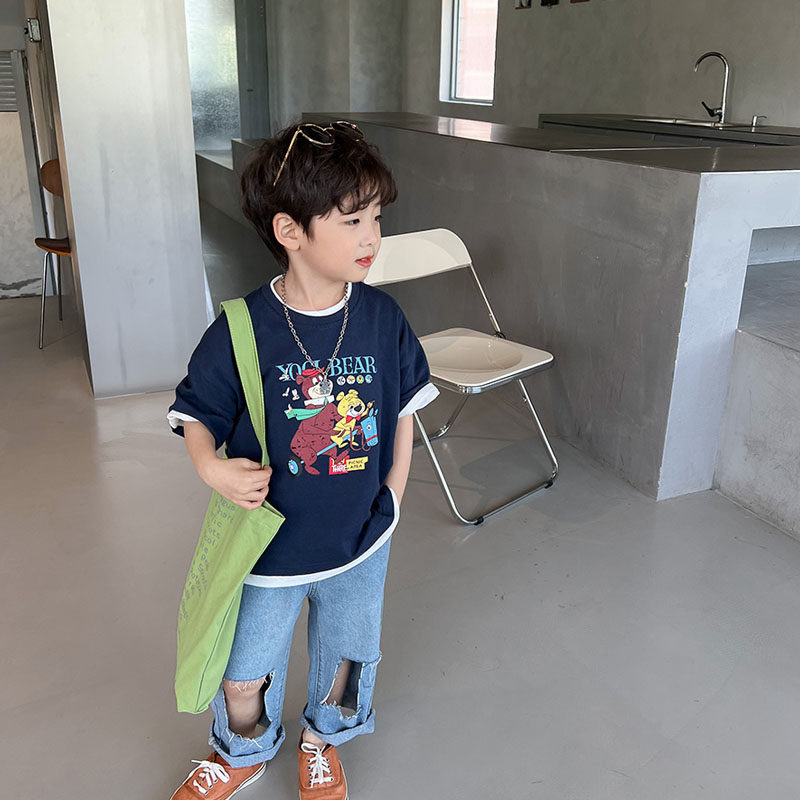 虾酱麻麻男童卡通短袖t恤夏季2025新款中大童洋气上衣儿童装体恤
