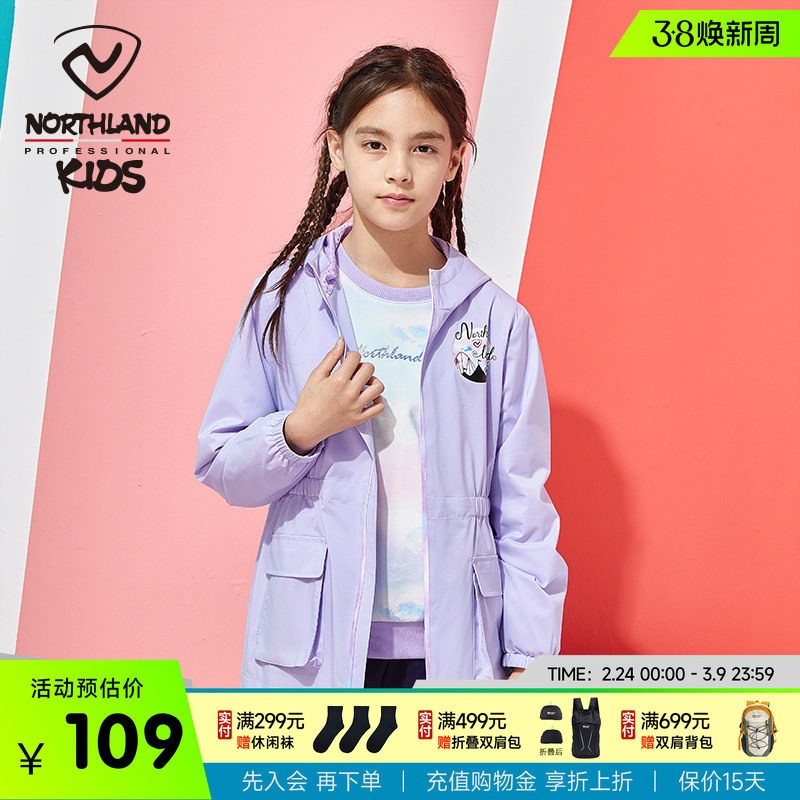 诺诗兰儿童防风外套女童冲锋夹克外衣夏季防水透湿户外服商场同款