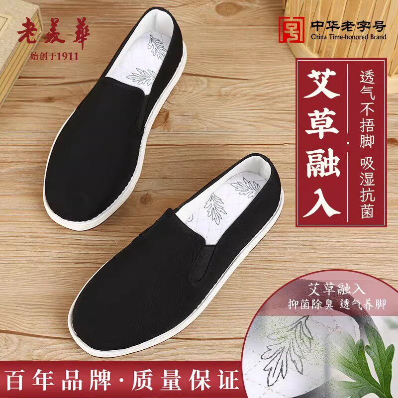 老美华2026新款防滑软底老北京布鞋男春季男士千层底一脚蹬爸爸鞋