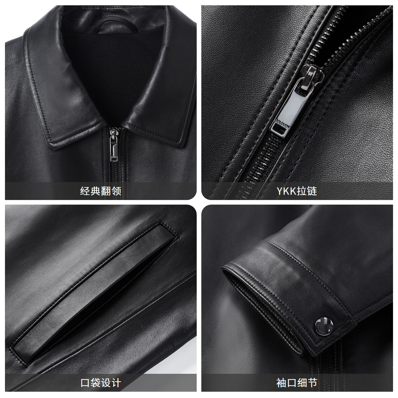 金利来25秋冬新款男士皮衣羊皮时尚经典翻领休闲拉链外套男款