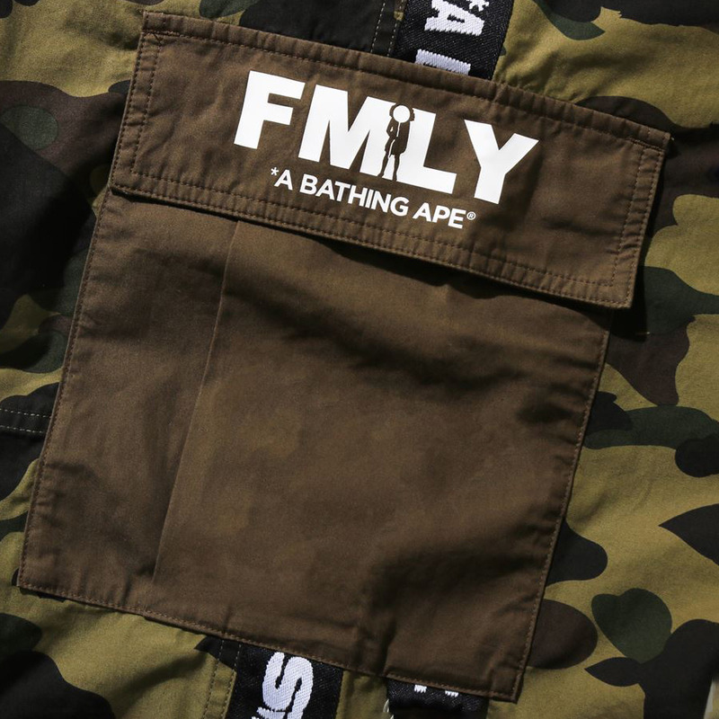 BAPE联名男装秋冬字母串标织带迷彩贴袋工装长裤152911H