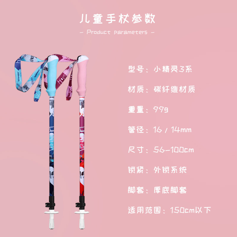 开拓者新款碳纤维儿童手杖 登山杖碳素超轻伸缩 户外滑雪徒步装备