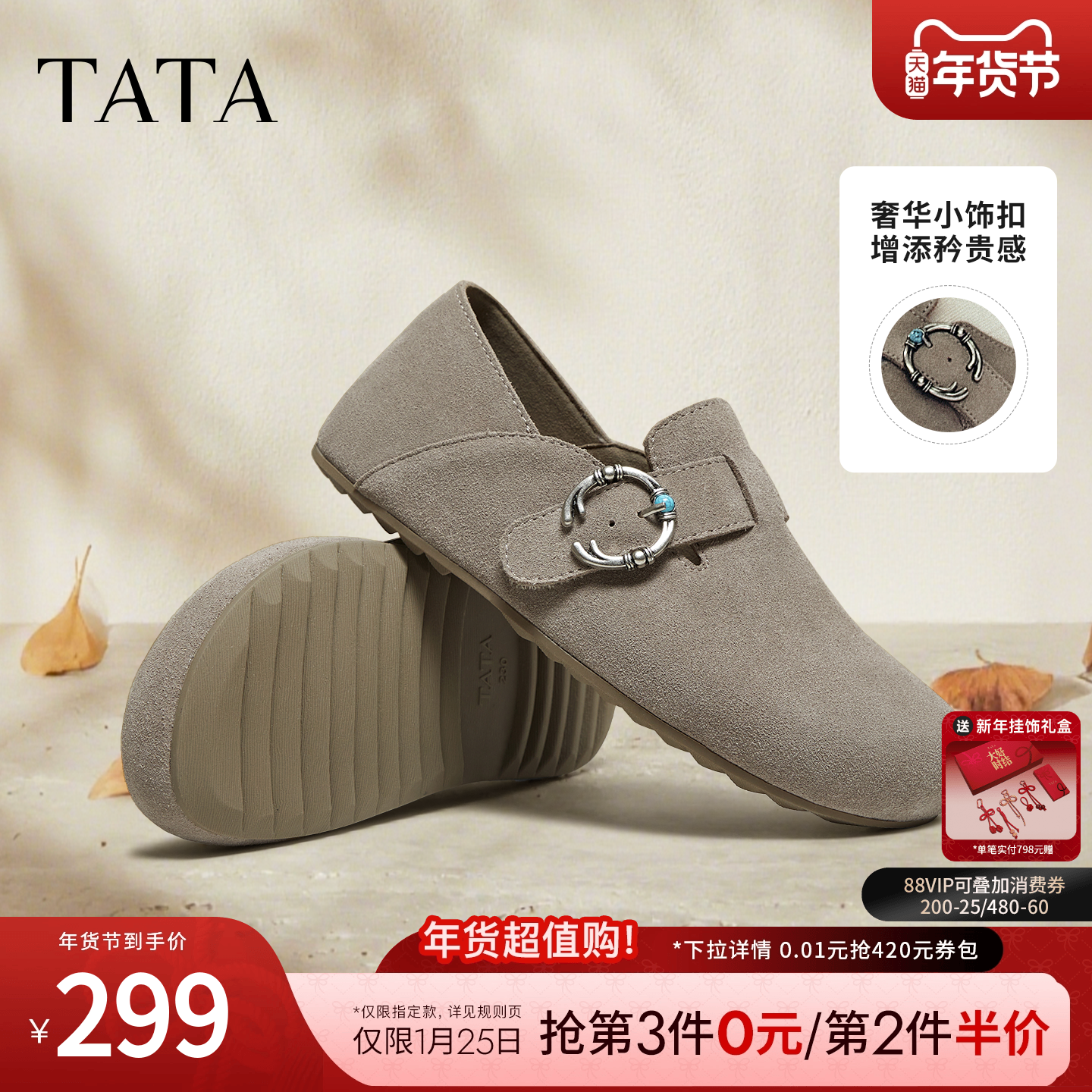 TATA他她复古加绒勃肯鞋女2025棉鞋厚底毛毛拖鞋穆勒鞋子CUG01CM5