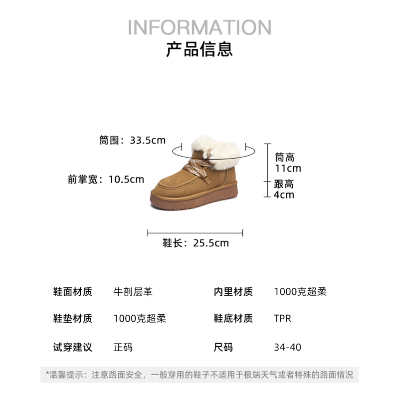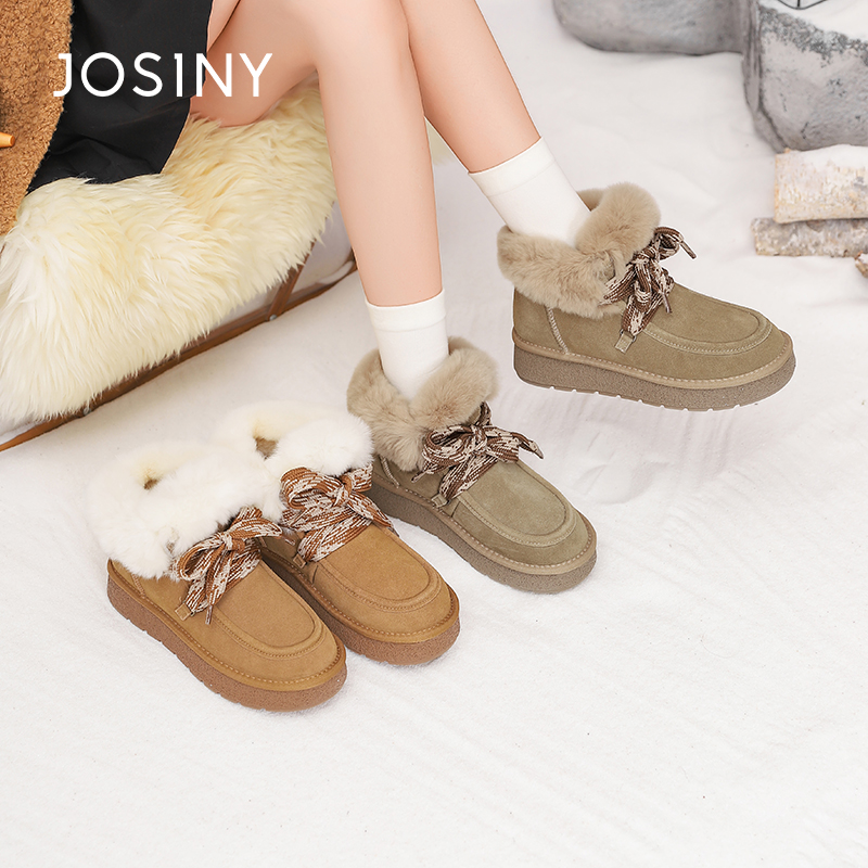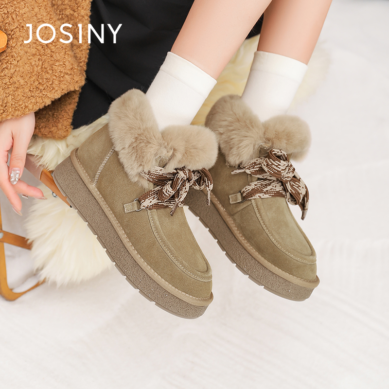卓诗尼2024冬季新款厚底雪地靴时尚舒适休闲女靴潮流保暖短筒靴女