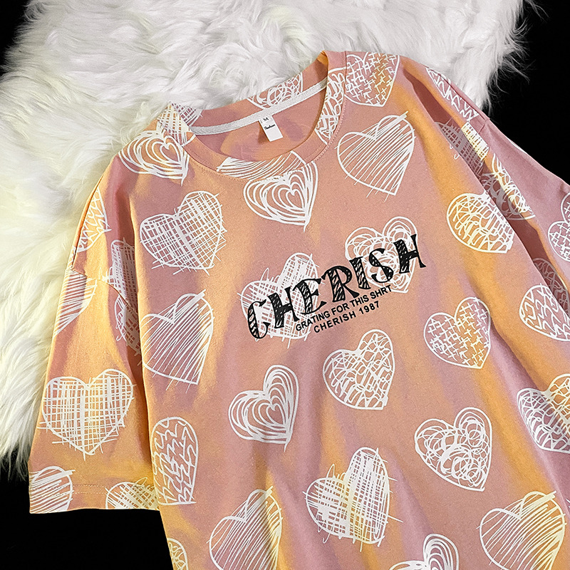 夏季情侣短袖t恤男宽松印花上衣圆领打底大码半袖衣服潮流体恤薄