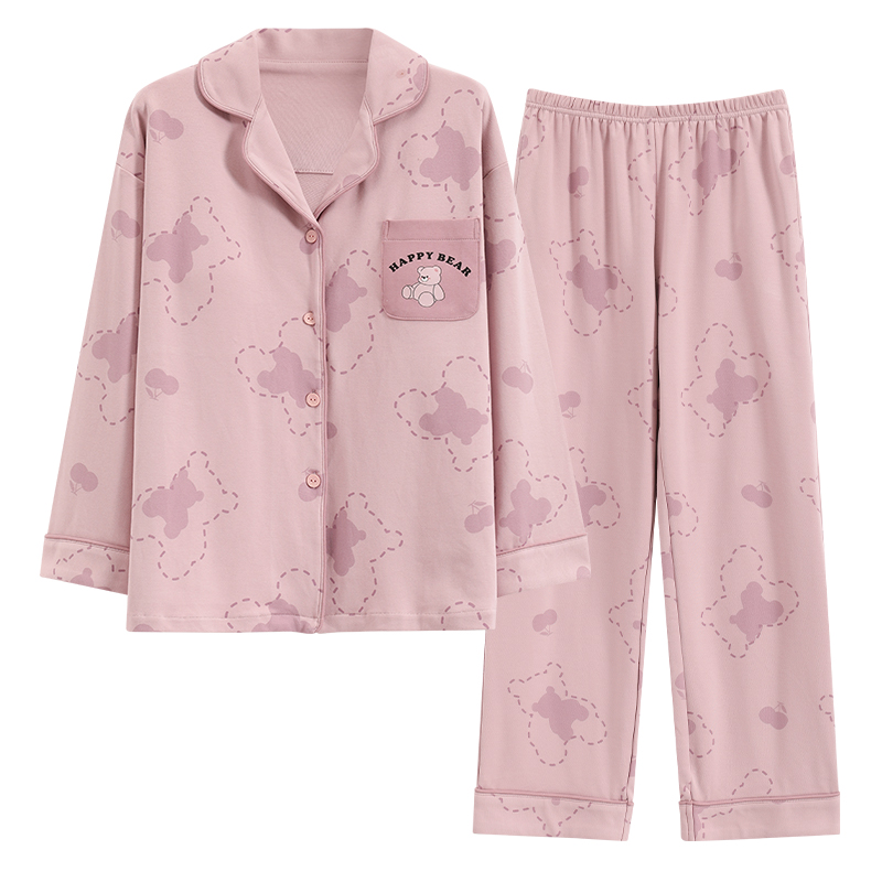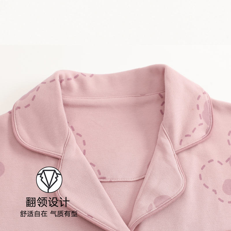 浪莎睡衣女纯棉带胸垫长袖两件套
