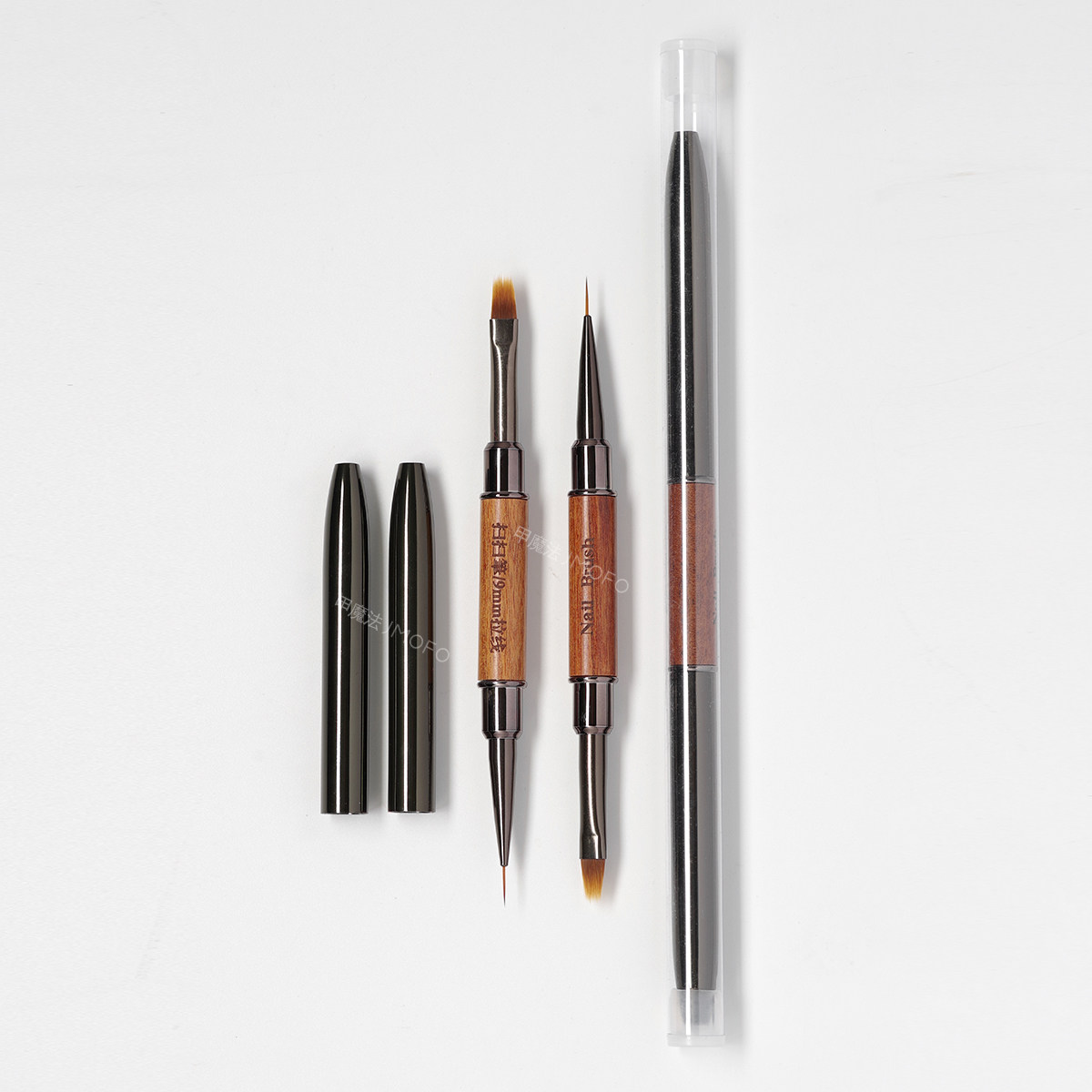 双头梳子扫扫笔拉线蕾丝笔建构晕染渐变美甲笔檀木杆带盖美甲工具