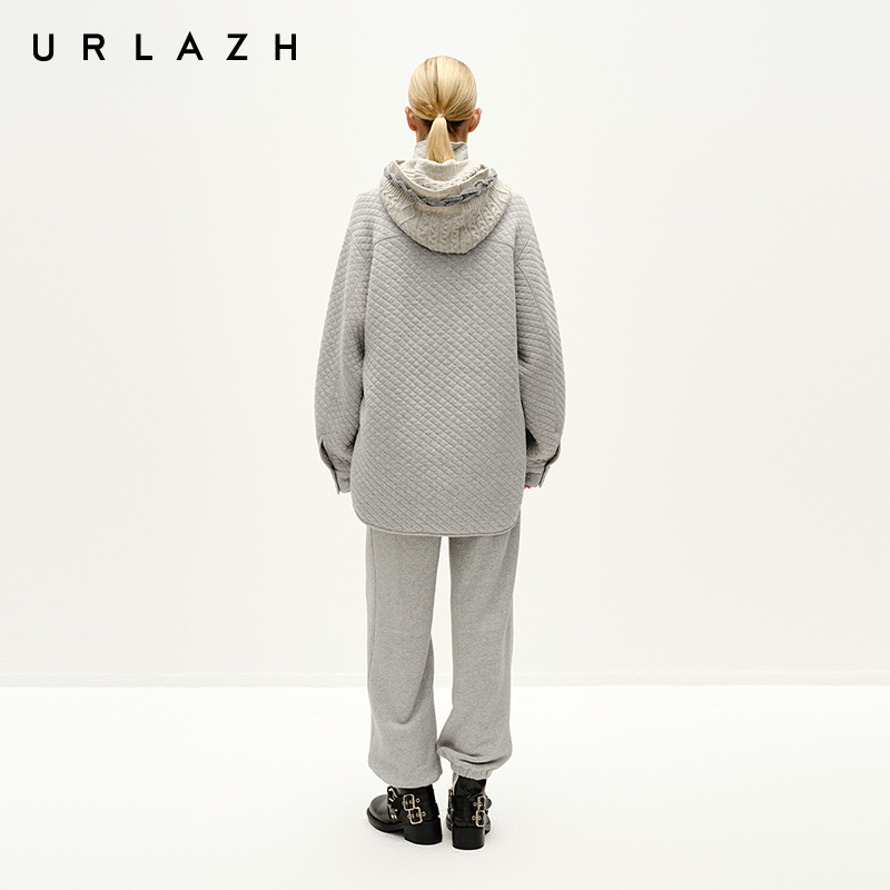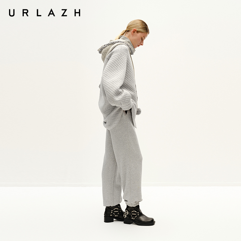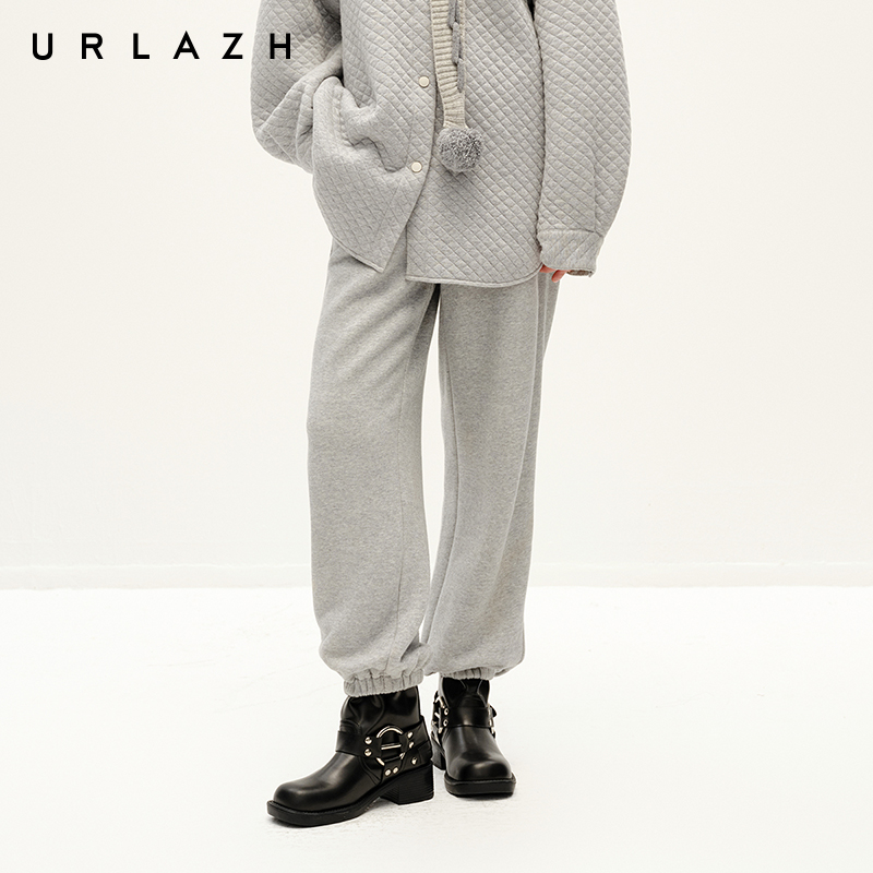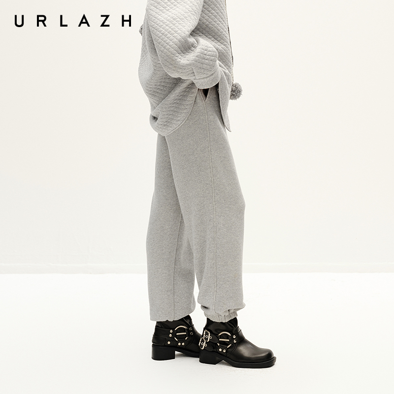 URLAZH有兰冬季新款简约百搭夹花灰加厚宽松束脚休闲运动卫裤女