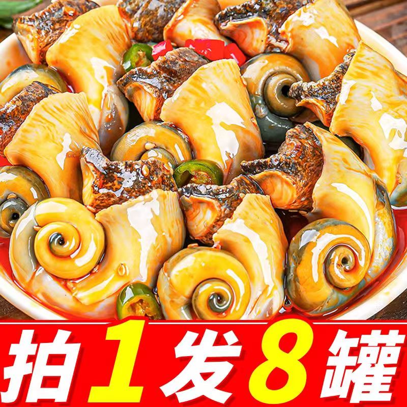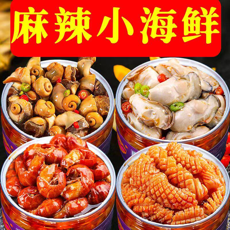 香辣大海螺肉即食海鲜罐头熟食小吃零食罐装八爪虾尾扇贝捞汁下饭