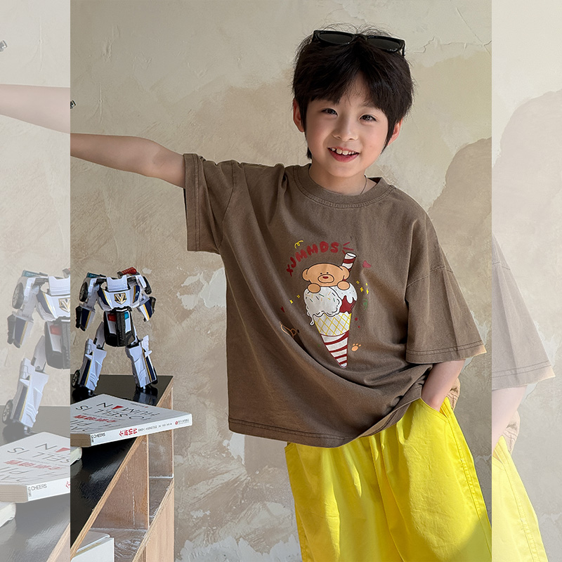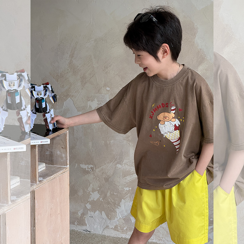 虾酱麻麻男童短袖t恤套装夏季2025新款男孩上衣撞色儿童纯棉裤子