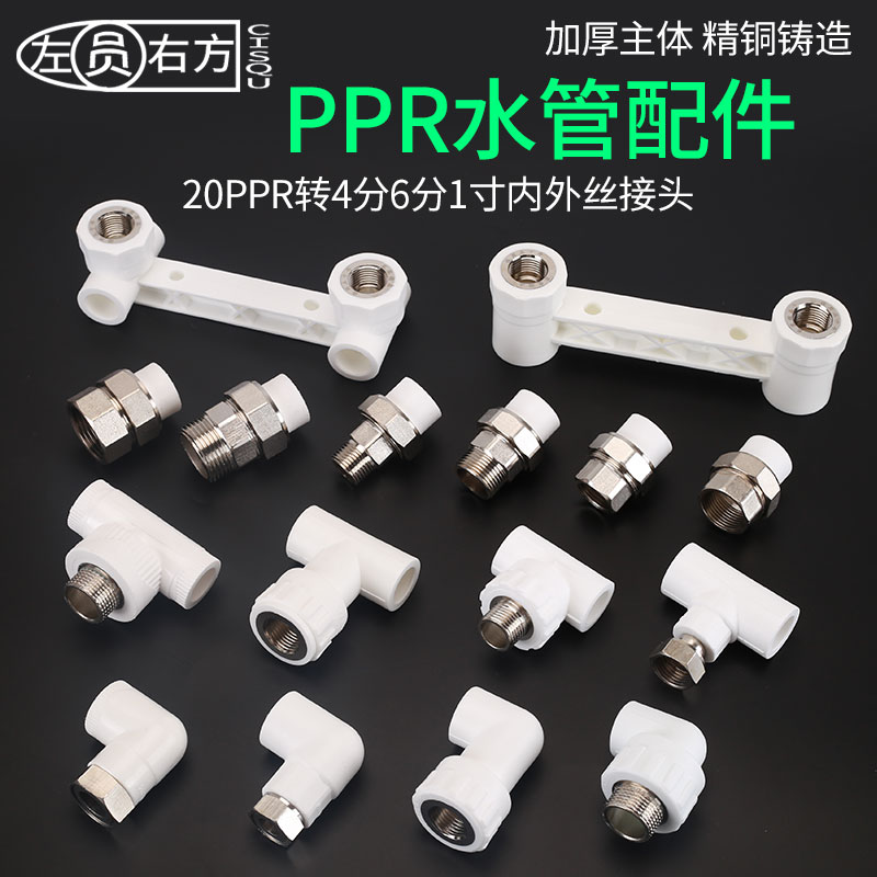 ppr水管配件4分6分内丝活接1寸外丝转20PPR弯头直接双联热熔三通