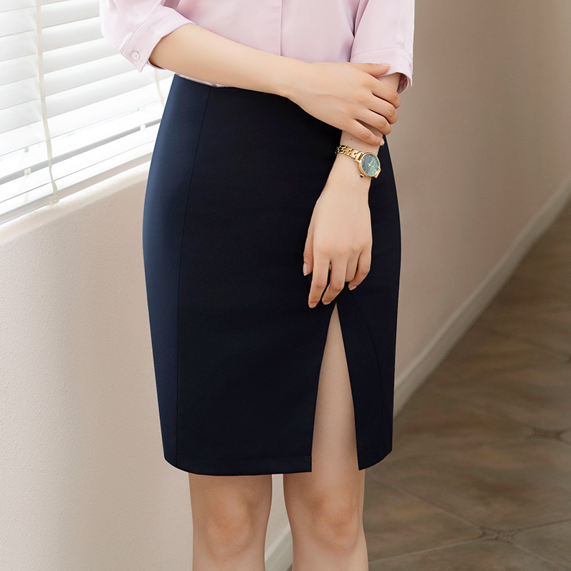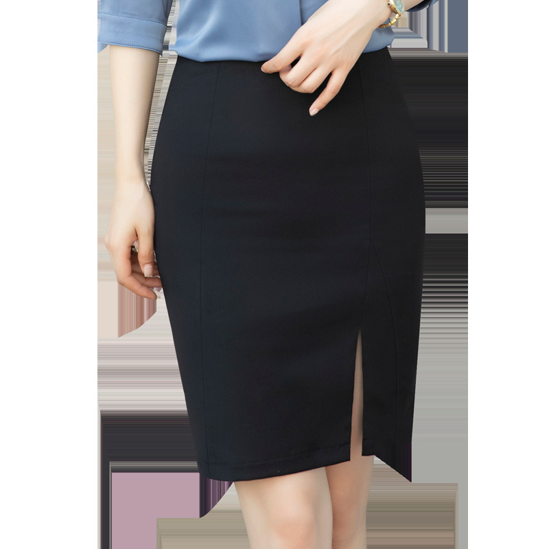 职业半身裙高腰黑色短裙女士一步裙工装裙女开叉工作裙藏青色包裙