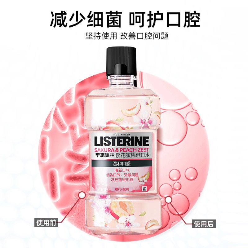 李施德林漱口水樱花蜜桃簌涑口水杀菌除口臭持久留香官方旗舰店