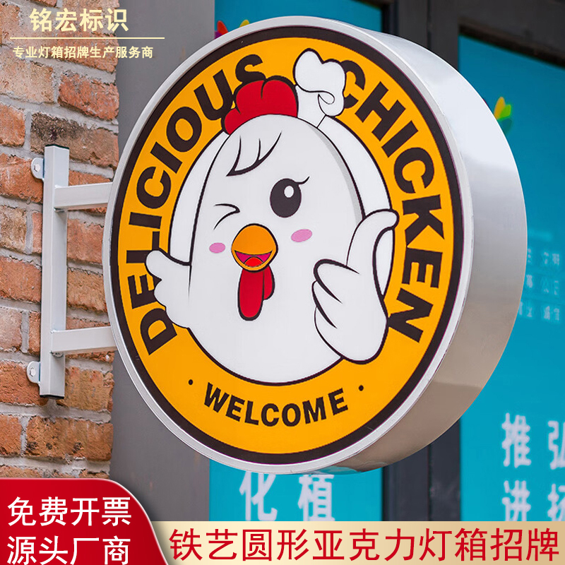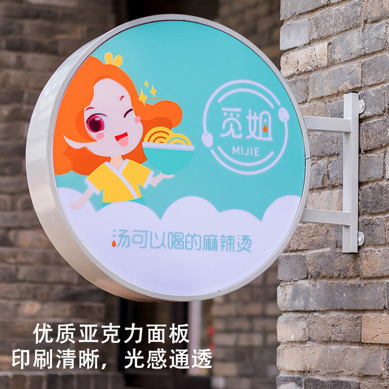 定制圆形门头灯箱招牌不锈钢广告牌户外亚克力发光led灯箱双面