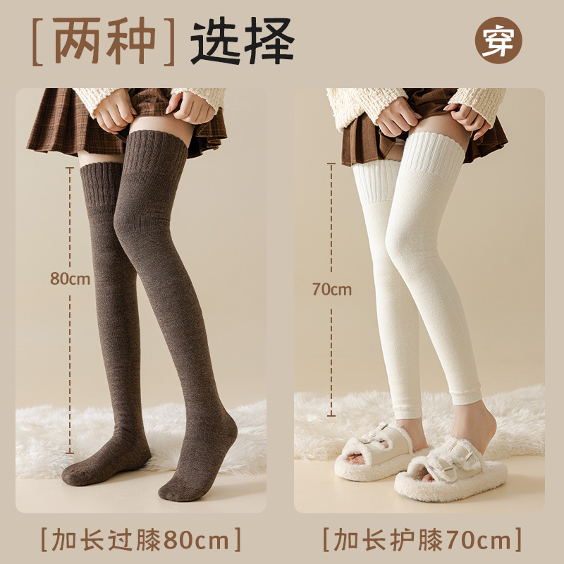 加长过膝长筒袜女羊绒护膝袜套秋冬季加绒加厚保暖高筒护大腿袜子
