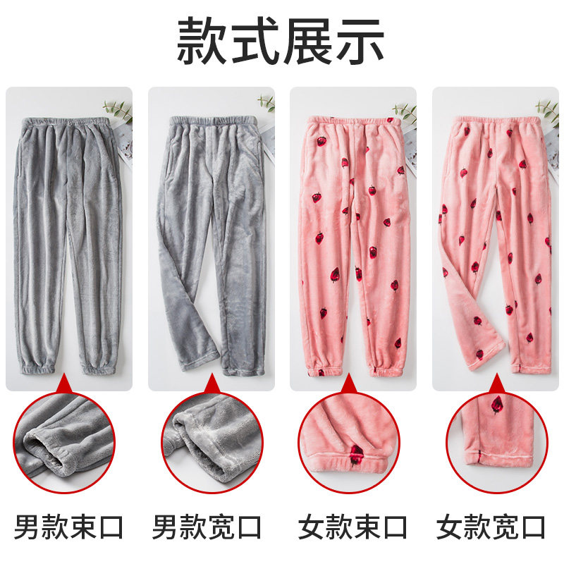 保暖睡裤男款女款秋冬季法兰绒加厚加绒珊瑚绒家居暖暖长裤