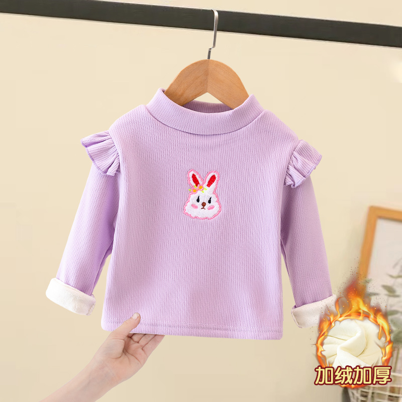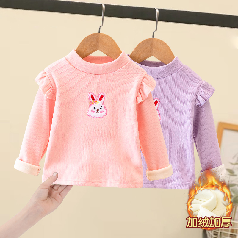 女童打底衫儿童秋冬款一体加绒保暖上衣女宝宝洋气半高领套头白色