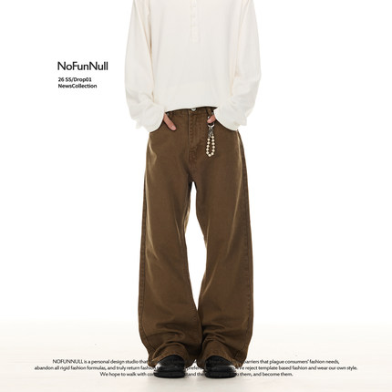 NOFUNNULL 美式复古美拉德棕色牛仔裤男春季宽松休闲直筒微喇长裤