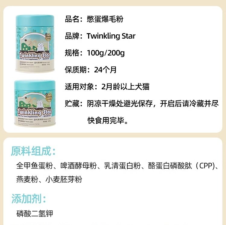 台湾Twinkling Star鳖蛋爆毛粉200g猫咪狗狗泰迪美毛憋蛋粉卵磷脂