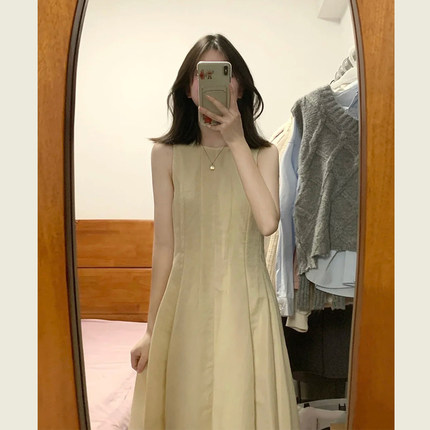 法式温柔风黄色无袖背心连衣裙女夏季新款设计感收腰显瘦A字长裙
