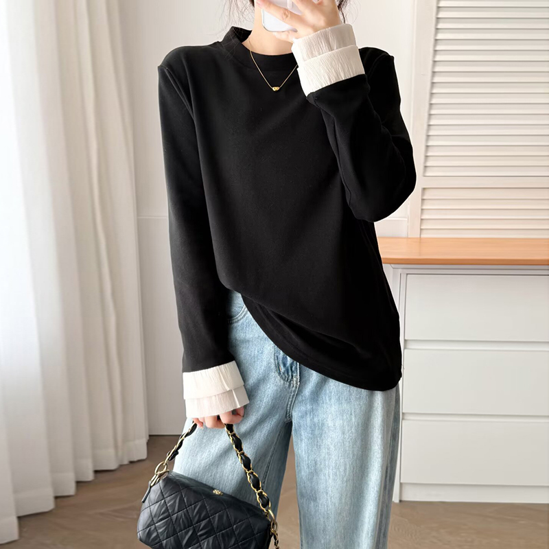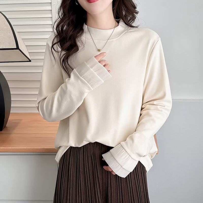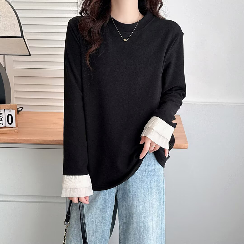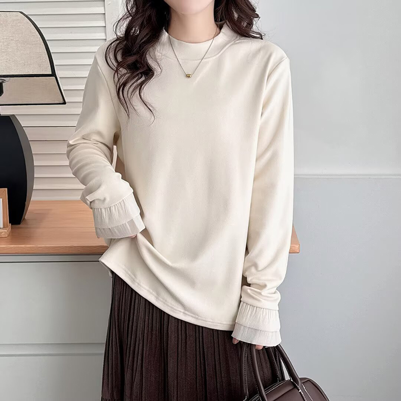 大码女装蕾丝拼接德绒内搭打底衫