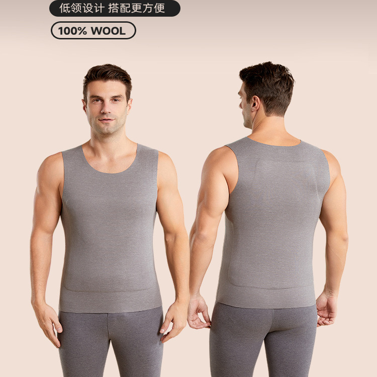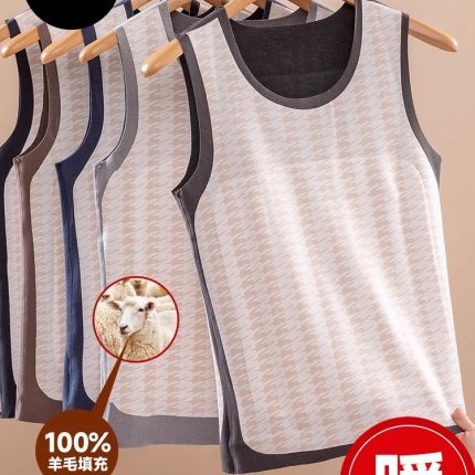 男士保暖背心冬加绒加厚羊毛无痕打底内衣坎肩中老年防寒