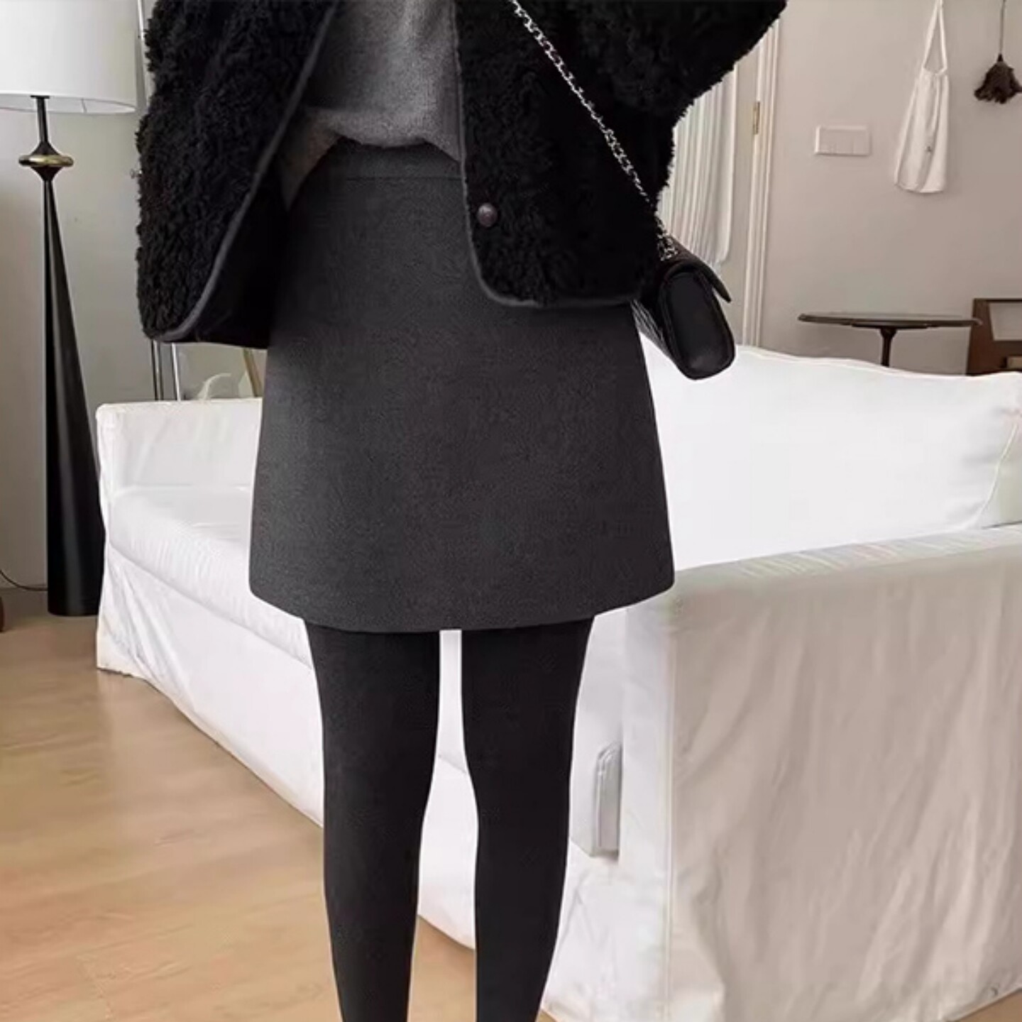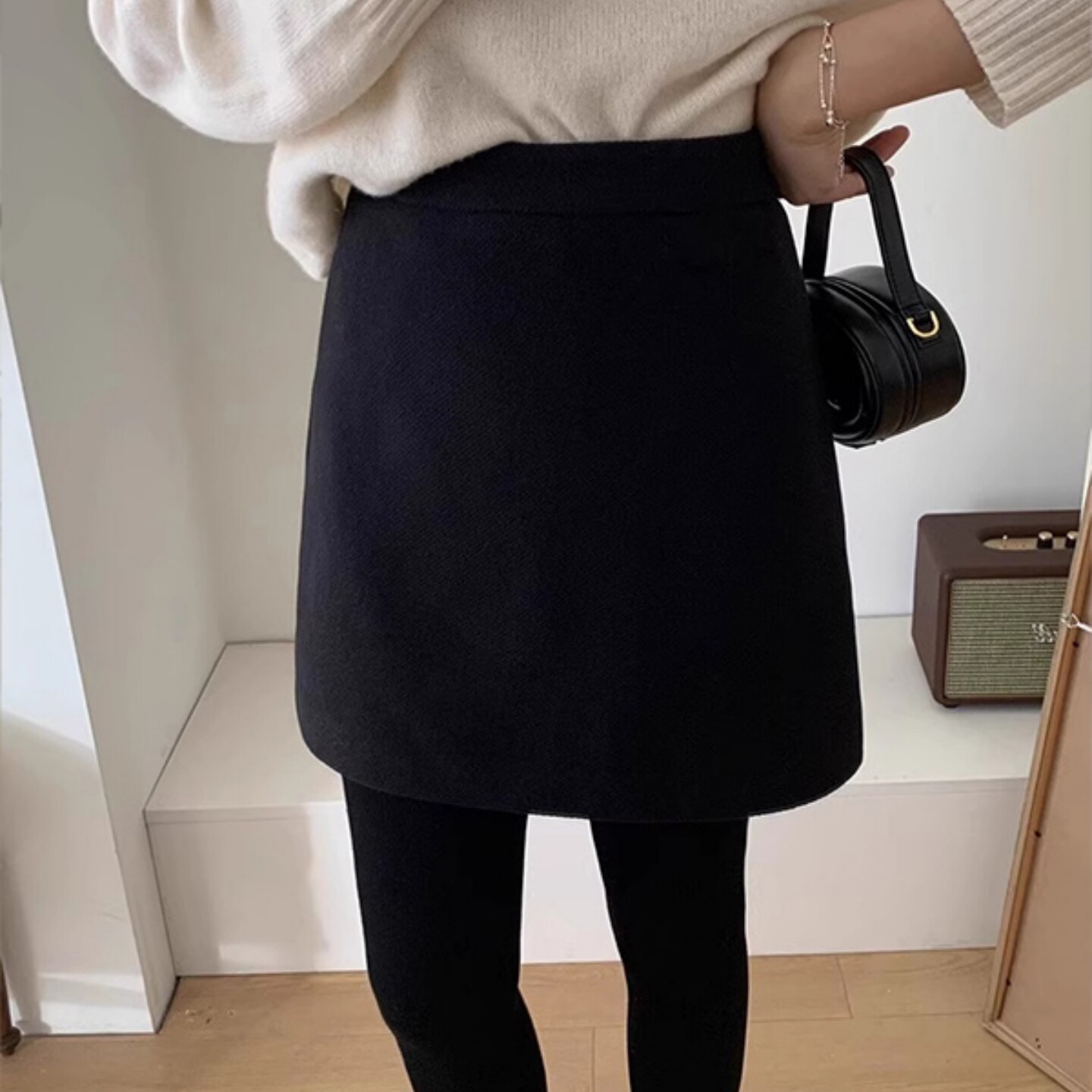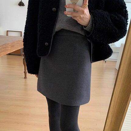 经典毛呢半身裙大码高腰包臀一步裙秋冬胖MM显瘦防走光a字短裙子